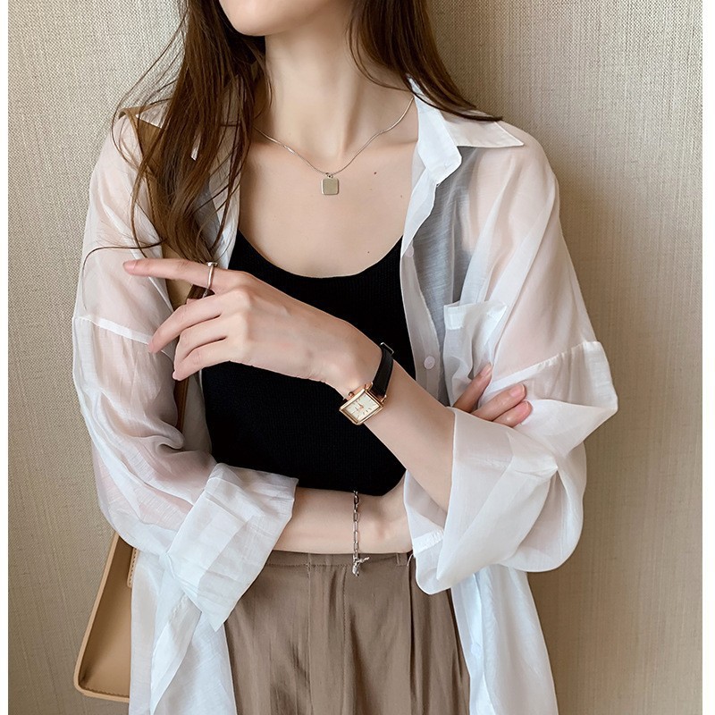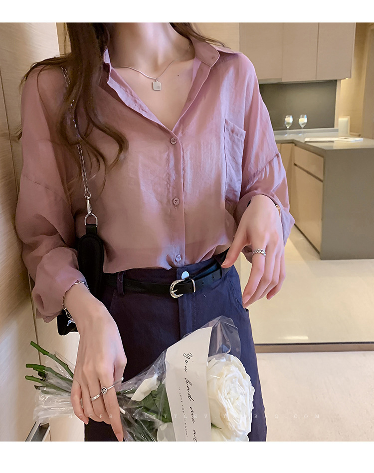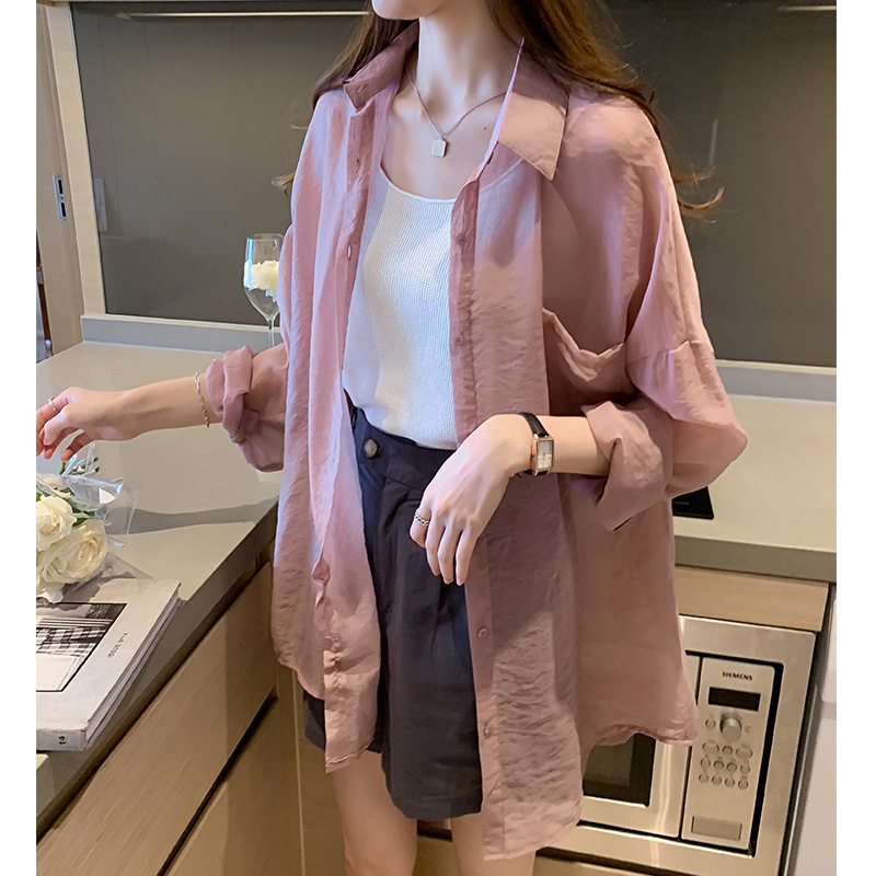 태양 보호 의류 여성 2025 여름 셔츠 한국 스타일 올 매치 쉬폰 카디건 얇은 셔츠 느슨한 에어컨 셔츠 여성용 라이닝