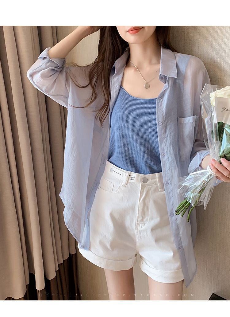 태양 보호 의류 여성 2025 여름 셔츠 한국 스타일 올 매치 쉬폰 카디건 얇은 셔츠 느슨한 에어컨 셔츠 여성용 라이닝스토어 가기