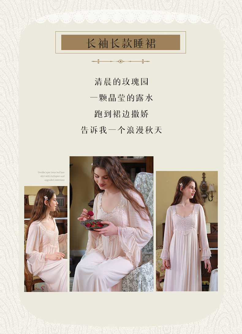 프렌치 스타일 잠옷 봄 가을 여성용 긴 소매 레이스 섹시한 순수한 매력 궁전 스타일 여성용 긴 잠옷 가슴 패드 포함스토어 가기