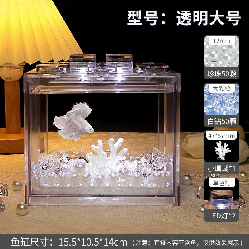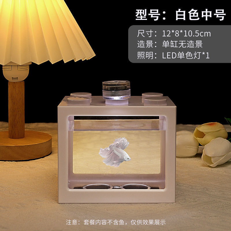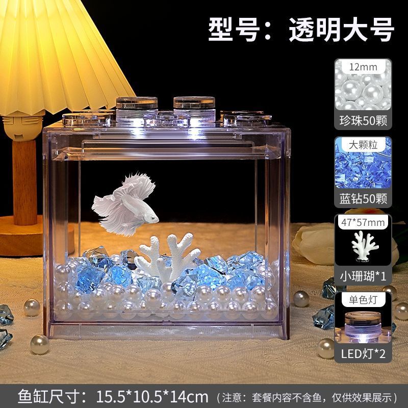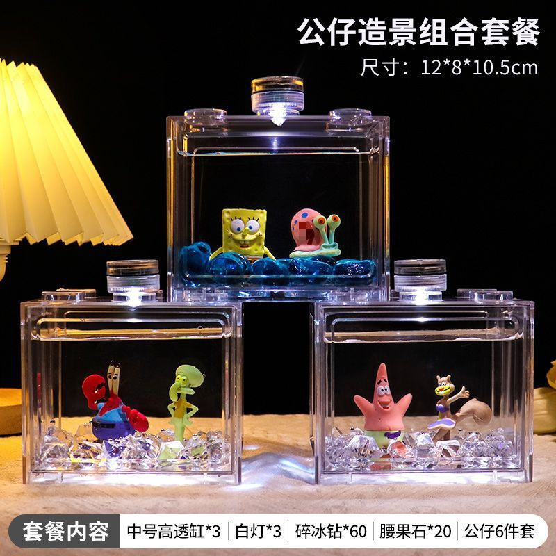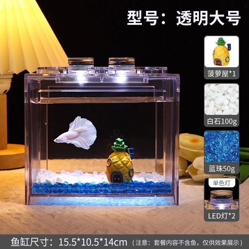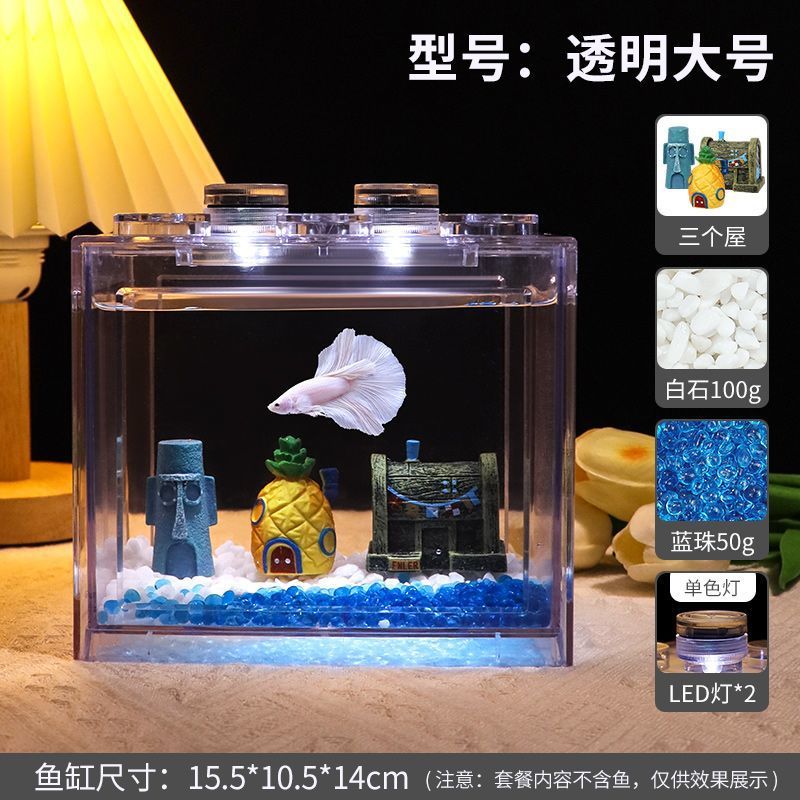 생태 싸움 물고기 작은 물고기 탱크 램프 거실 창조적 인 마이크로 풍경 두꺼운 데스크탑 탱크 조경 아크릴 빌딩 블록 상자