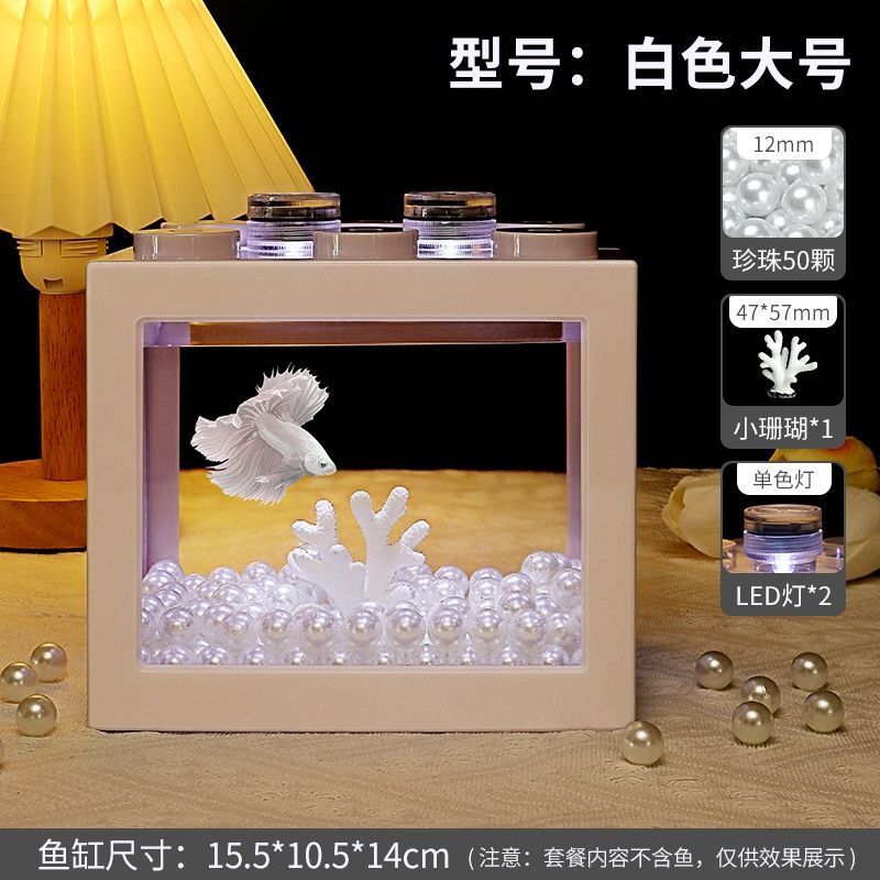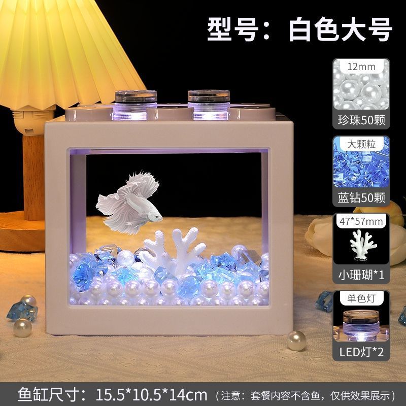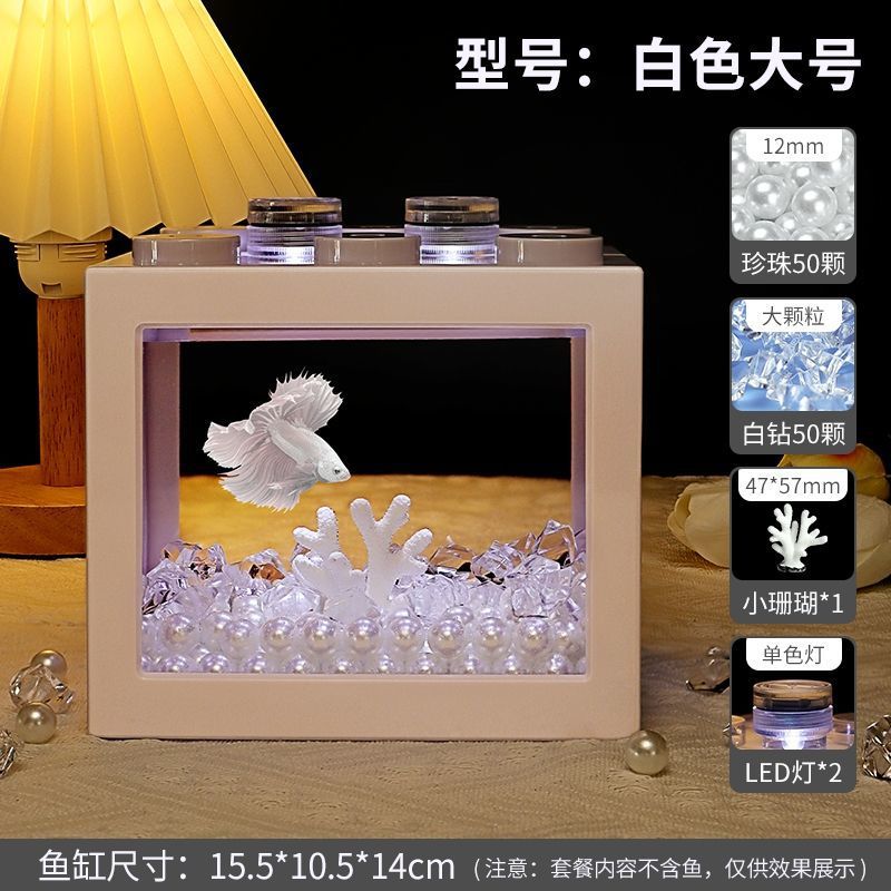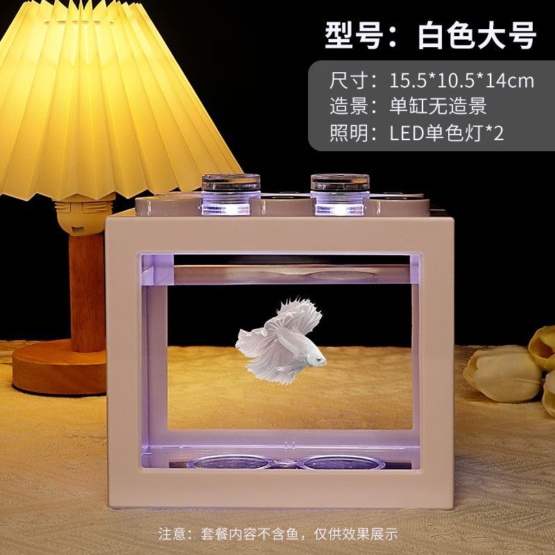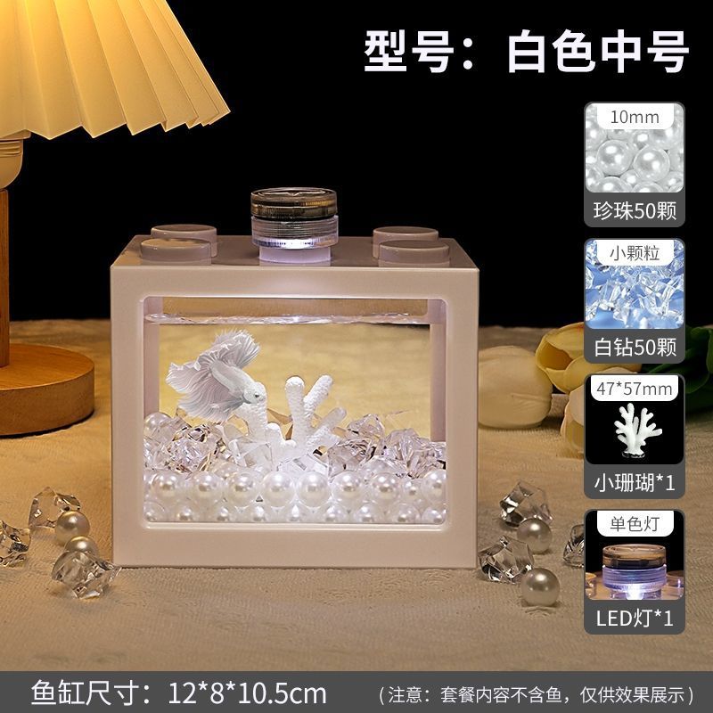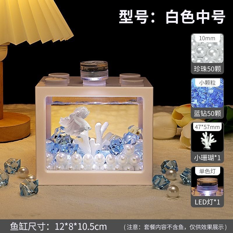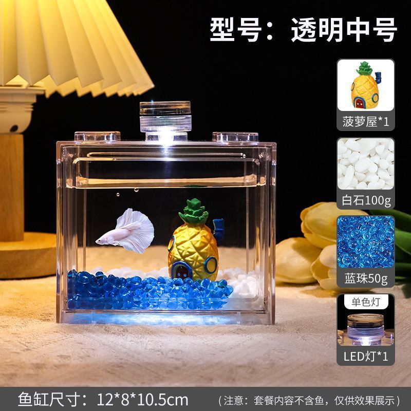 생태 싸움 물고기 작은 물고기 탱크 램프 거실 창조적 인 마이크로 풍경 두꺼운 데스크탑 탱크 조경 아크릴 빌딩 블록 상자