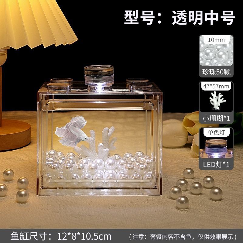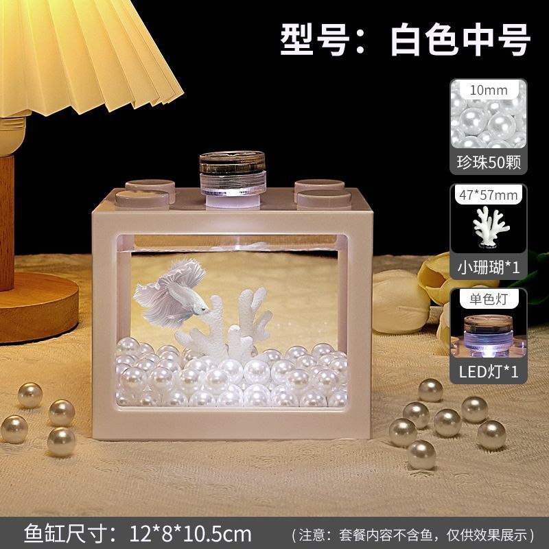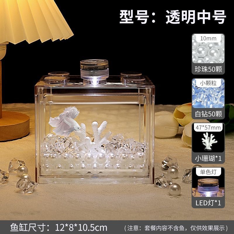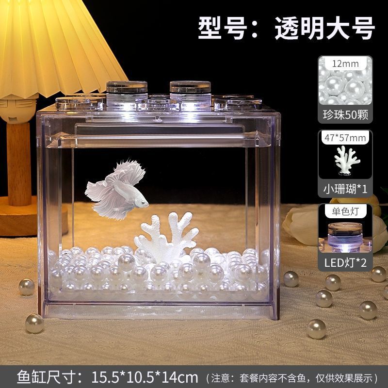 생태 싸움 물고기 작은 물고기 탱크 램프 거실 창조적 인 마이크로 풍경 두꺼운 데스크탑 탱크 조경 아크릴 빌딩 블록 상자스토어 가기
