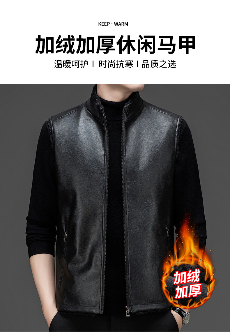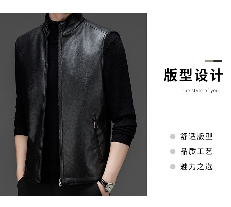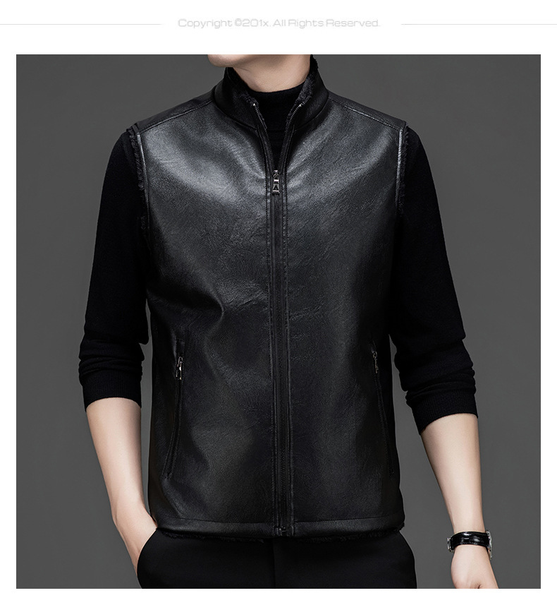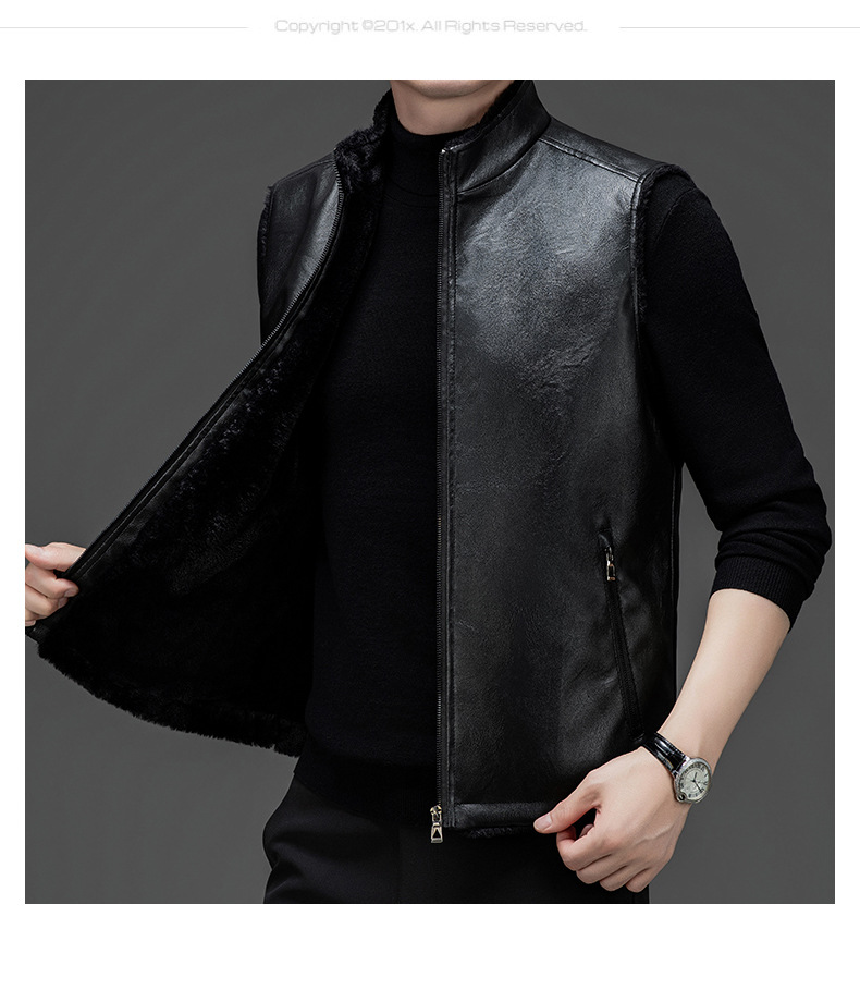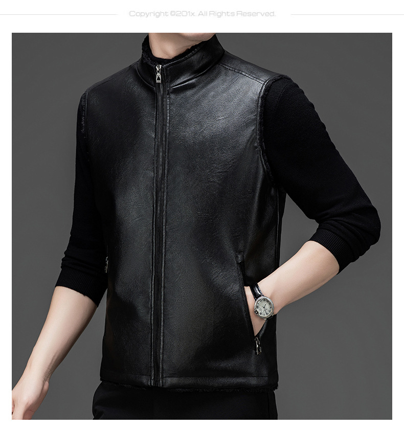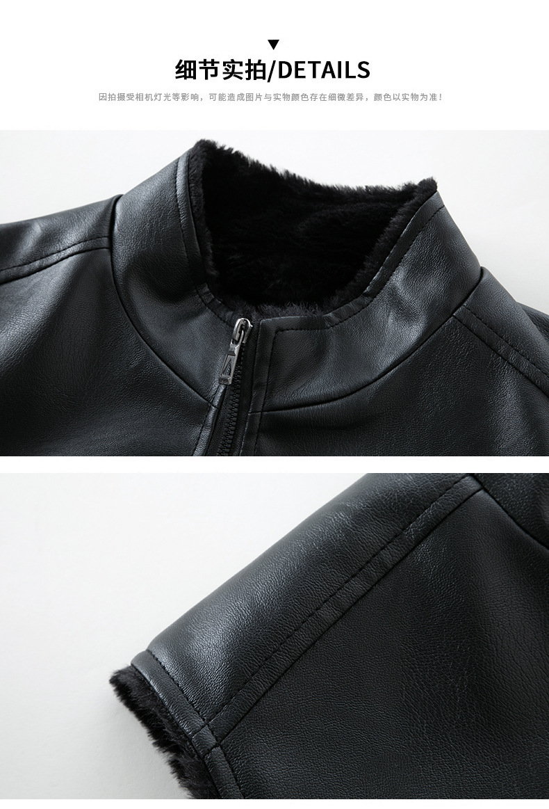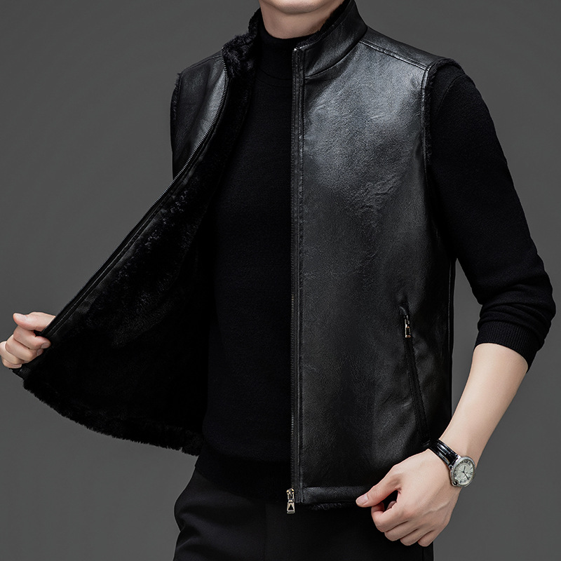 새로운 모피 원피스 가죽 조끼 남성용 가죽 지갑 캐주얼 칼라 남성용 가죽 웨어 기모 가죽 자켓