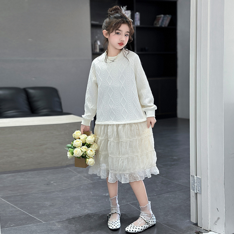 여자 원피스 봄 새로운 한국 스타일 어린이 공주 땀 서양 스타일 유행 소녀 스커트 유행 후 저우 질리