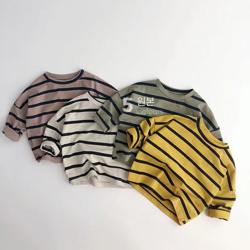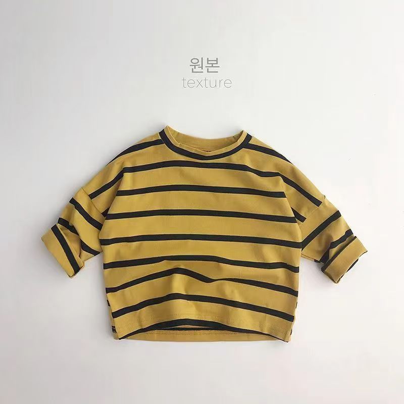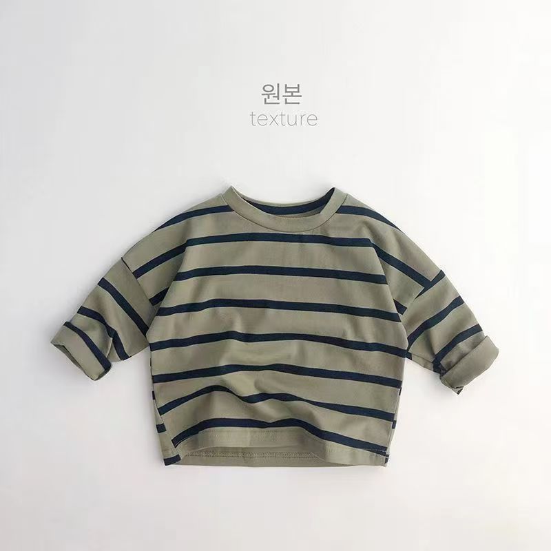 봄과 가을 어린이 캐주얼 스트라이프 새 티셔츠 면화 남성 및 여성 패션 보물 외국 스타일 긴 소매 바닥 t의 한국 버전에 모든 경기가 눈을 감았습니다.스토어 가기