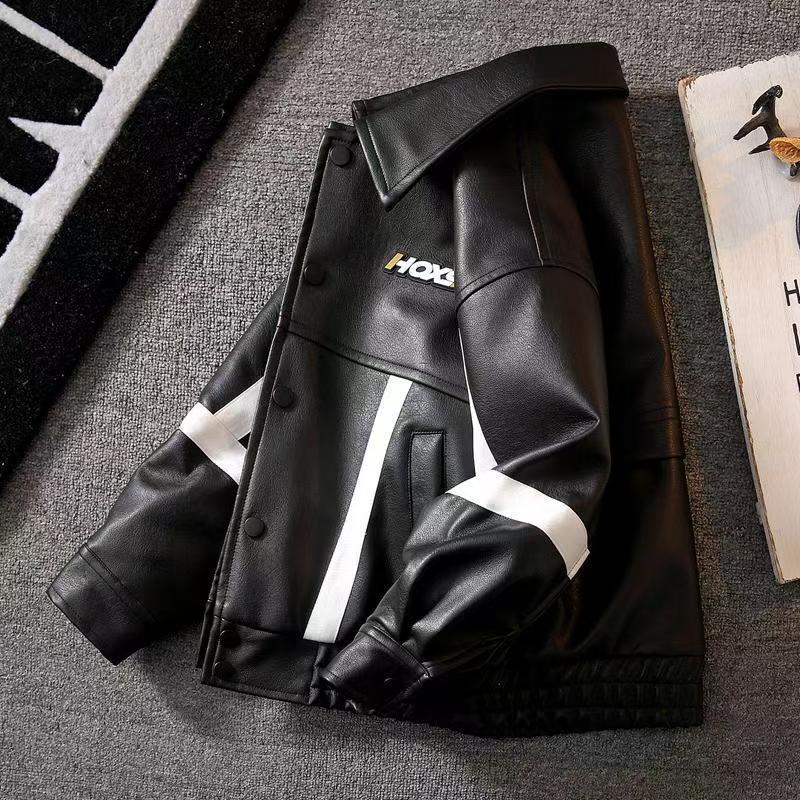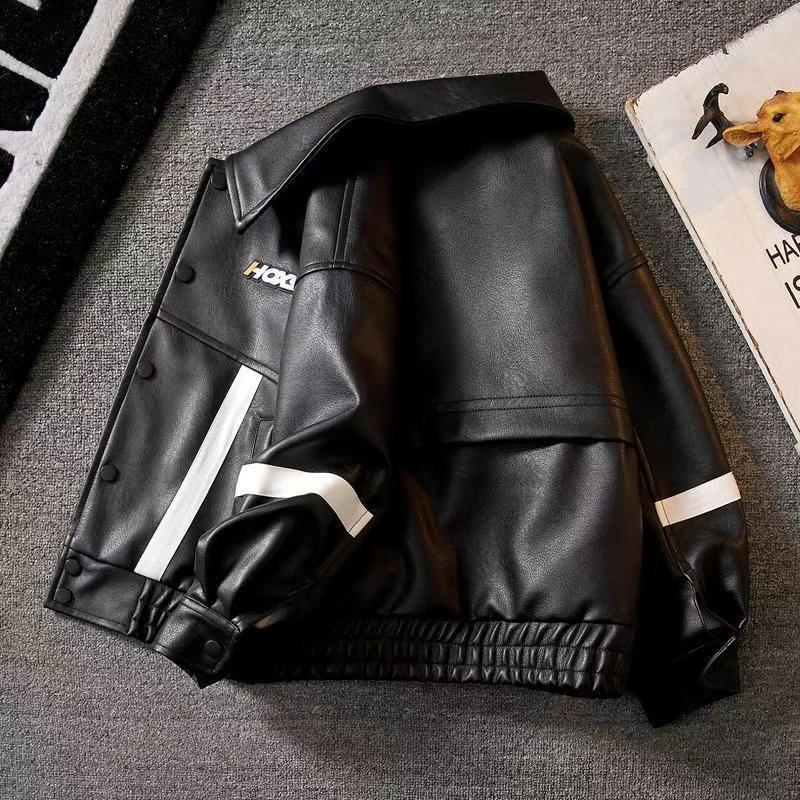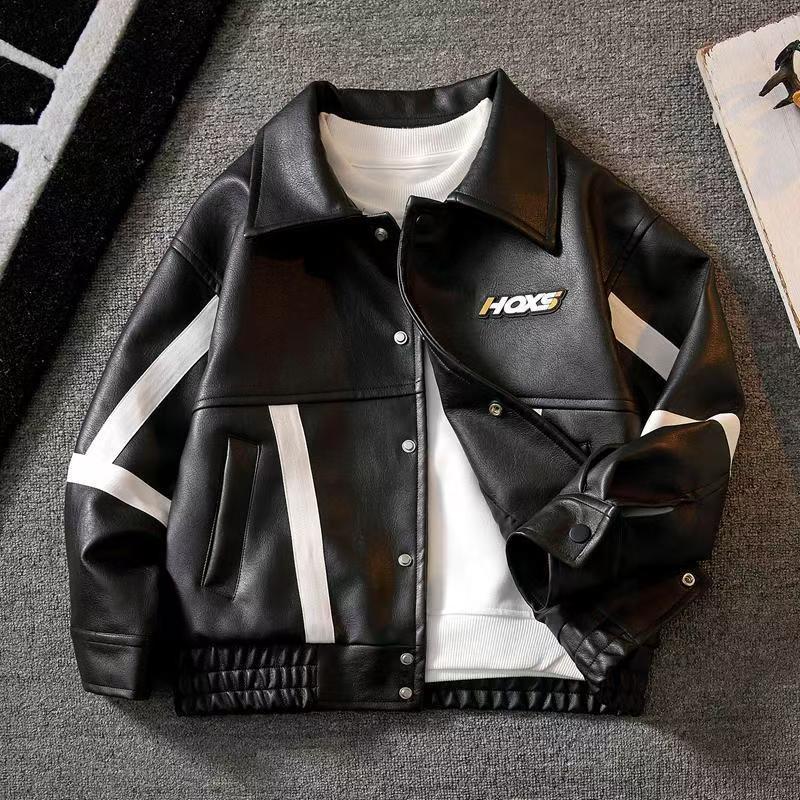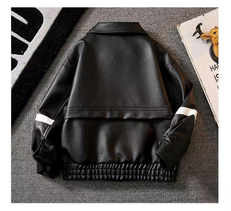 [버전 디자인 편안한] 어린이 착용 소년 코트 봄과 가을 2025 새로운 중대형 어린이 가죽 옷 봄 옷스토어 가기