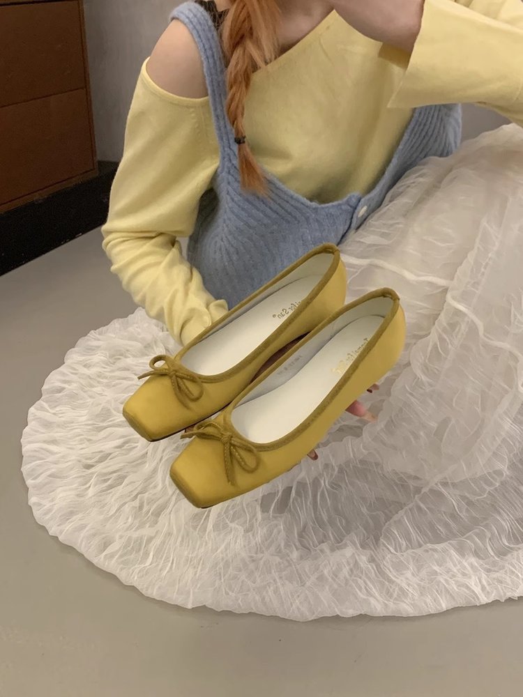 내부 높이 3cm '고무 천 로퍼 신발 얕은 입 페달 내부 높이 스퀘어 헤드 로우 힐 (1-3스토어 가기