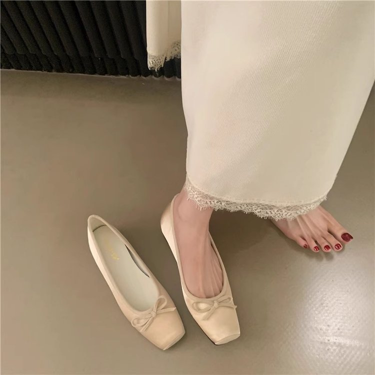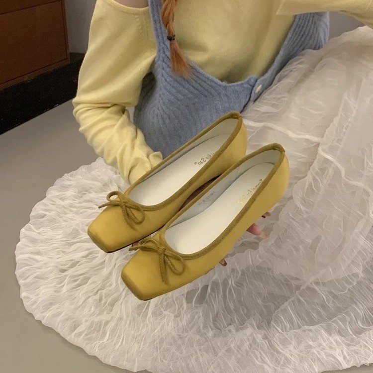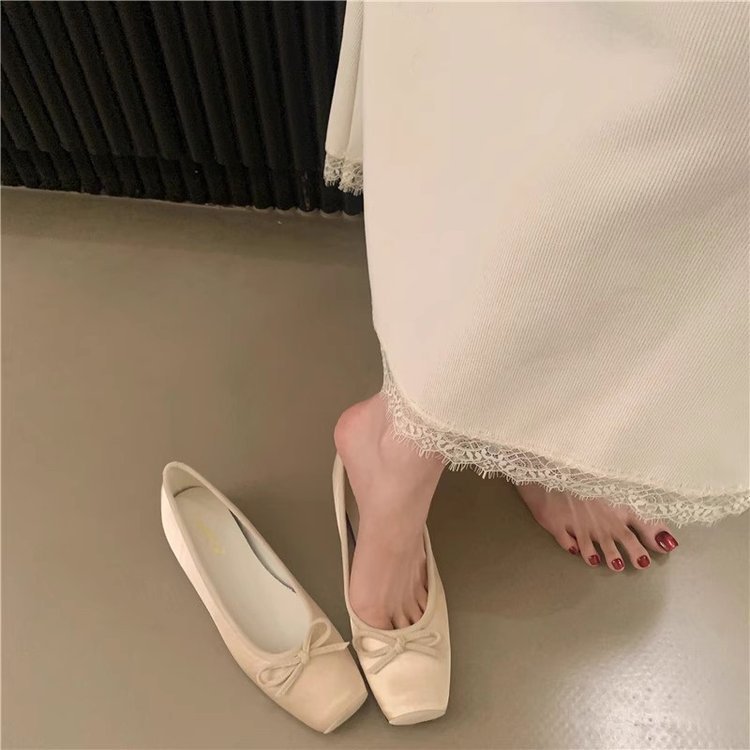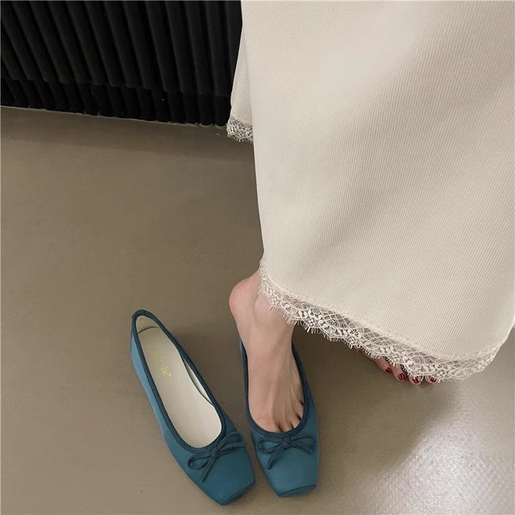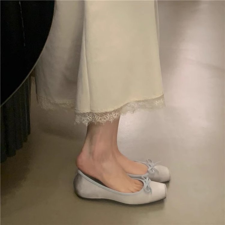 내부 높이 3cm '고무 천 로퍼 신발 얕은 입 페달 내부 높이 스퀘어 헤드 로우 힐 (1-3