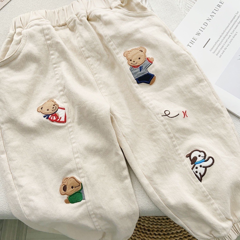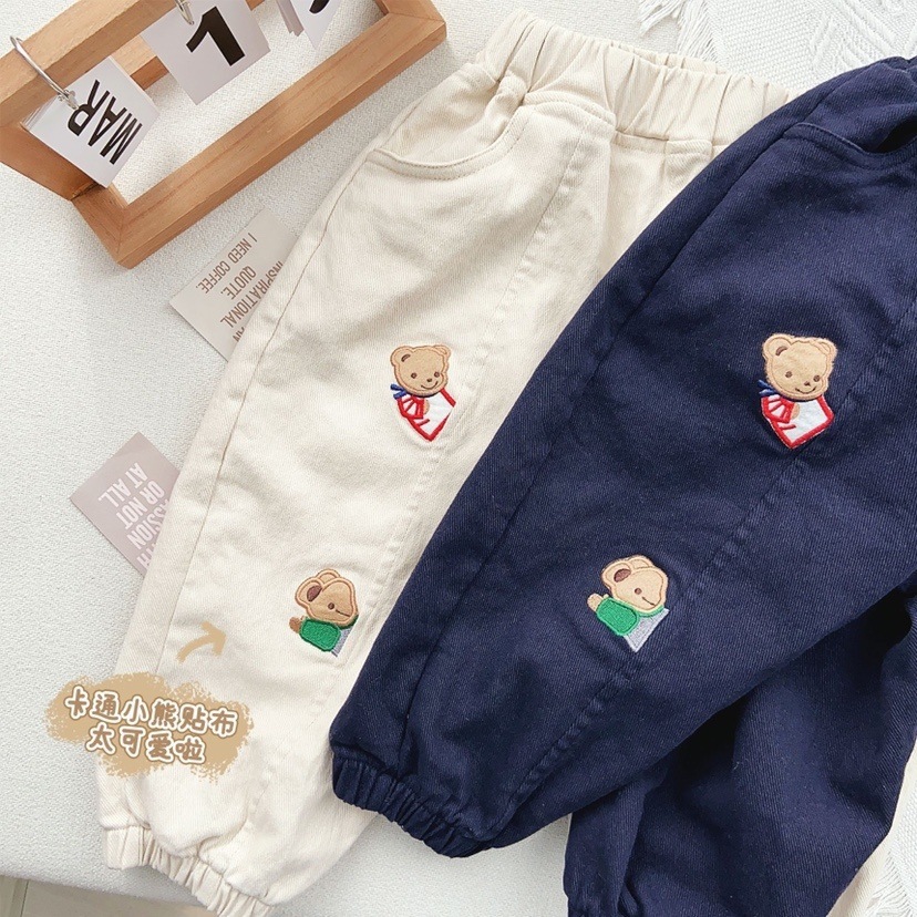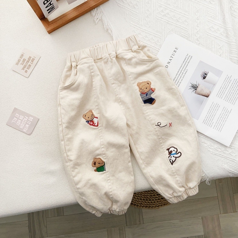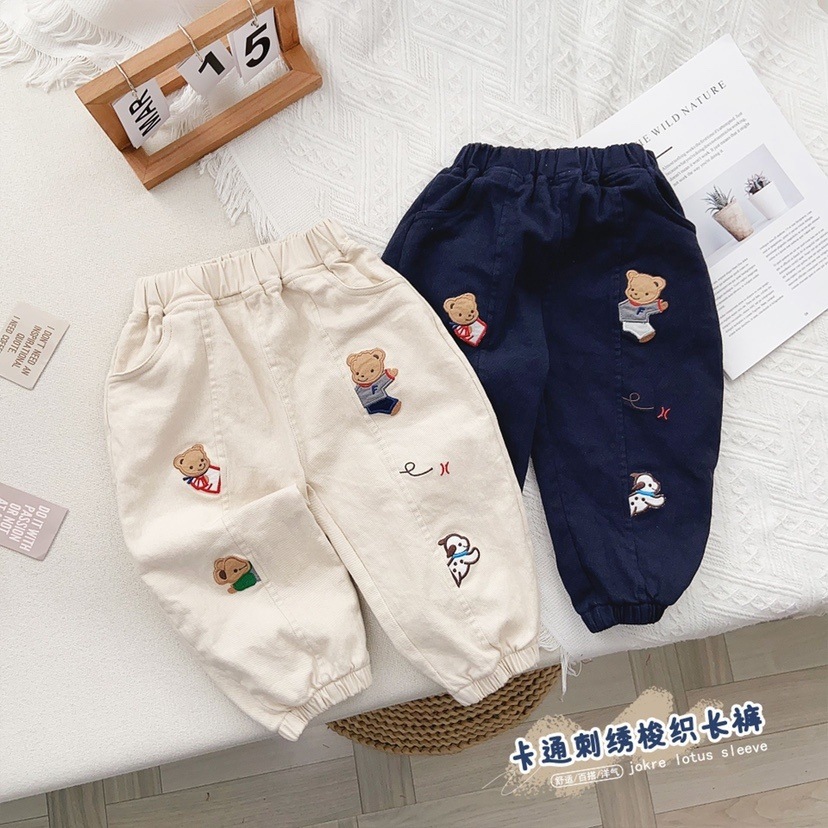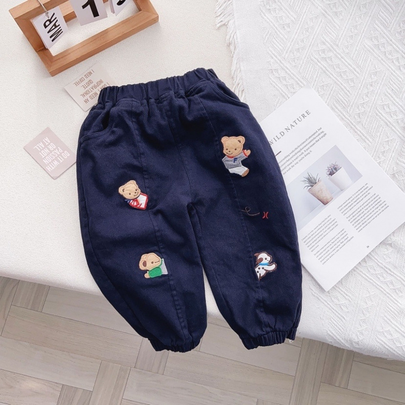 새로운 어린이 23 봄 일본 어린이 짠 바지 만화 자수 소년 소녀 캐주얼 바지 무료 배송