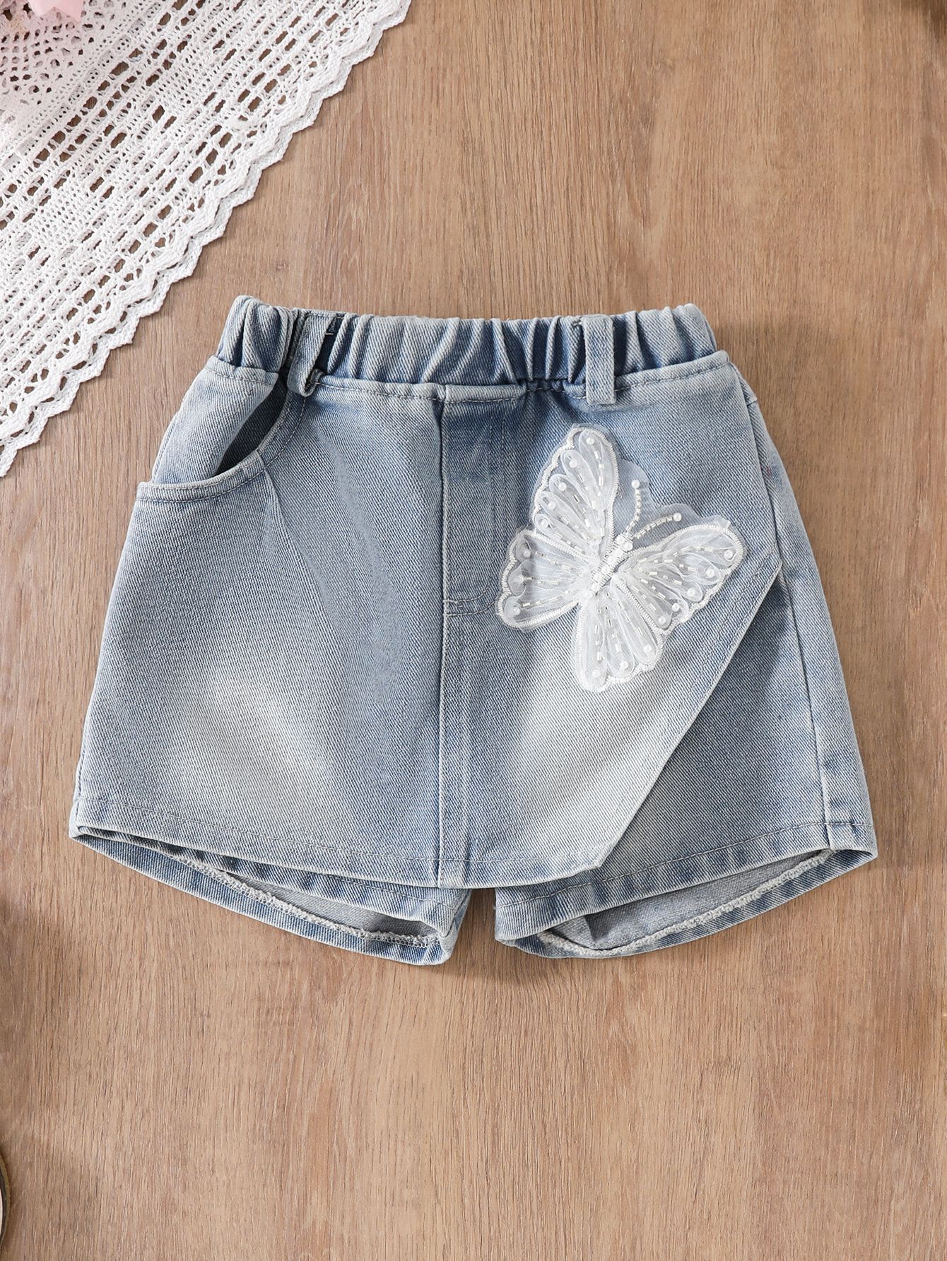 소녀 2025 여름 폭발 중소 어린이 새 3 차원 꽃 슬링 티셔츠 나비 데님 반바지 세트