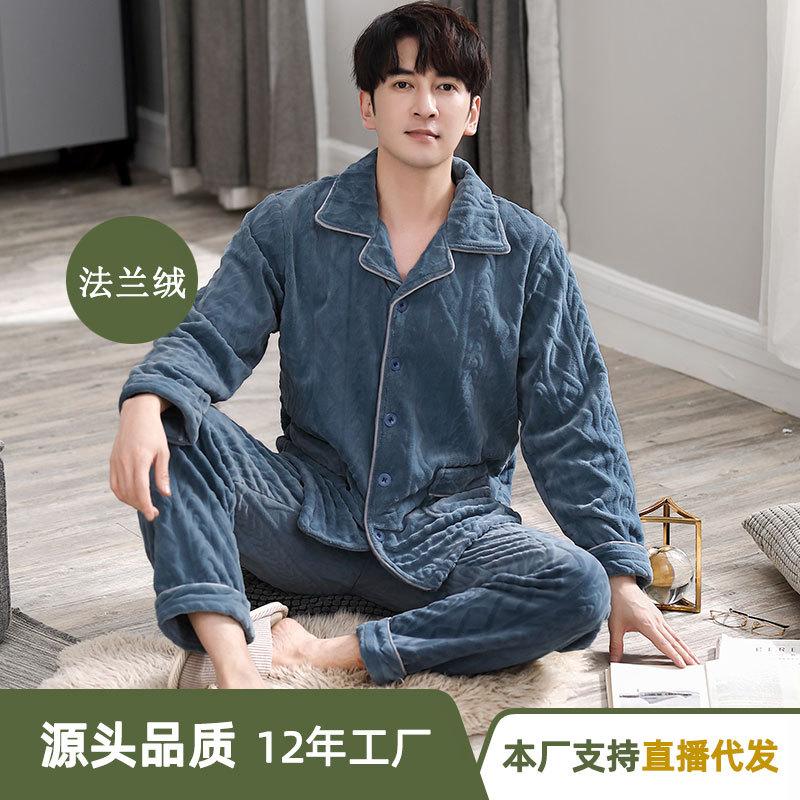 珊瑚绒睡衣男冬季绒款长裤新款加厚保暖套装大码长袖法兰绒家居服스토어 가기