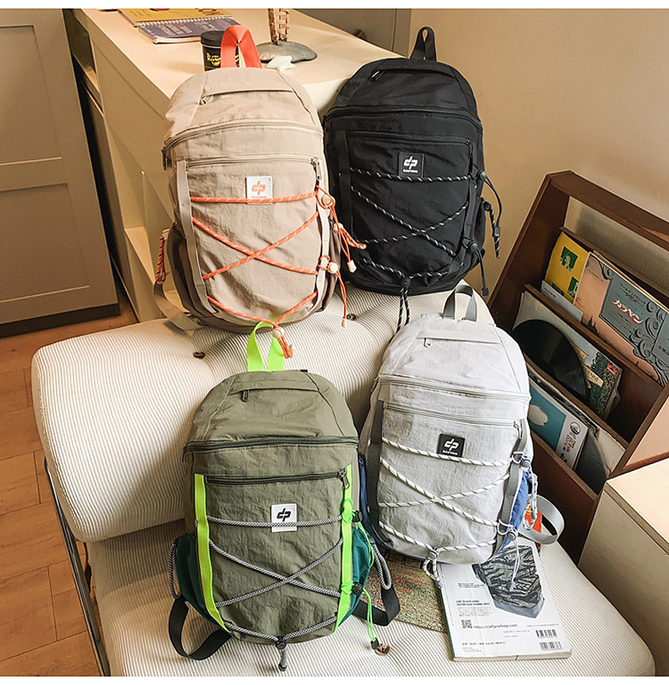 2025 새로운 도착 하이킹 소형 배낭 여성 스포츠 색상 차단 드로우 라이트 웨이트 스쿨백 발수 소형 배낭