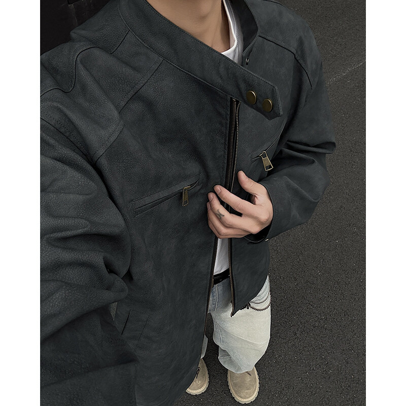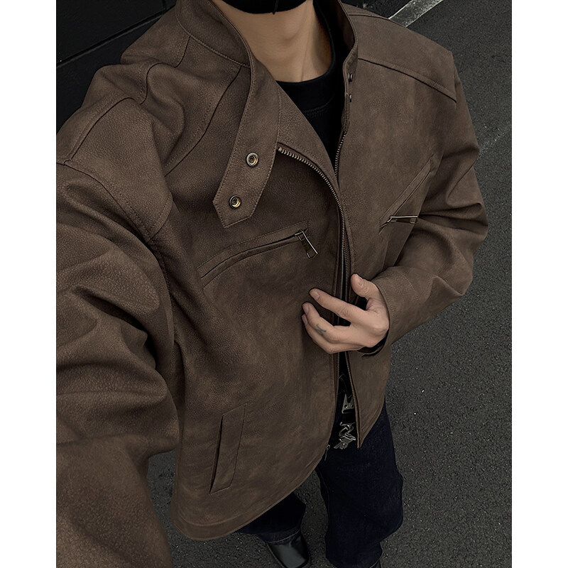 아메리칸 스타일 빈티지 다크 브라운 가죽 자켓 남성 봄과 가을 패션 브랜드 새로운 스타일 잘 생긴 방풍 짧은 가죽 자켓 남성용 탑스토어 가기