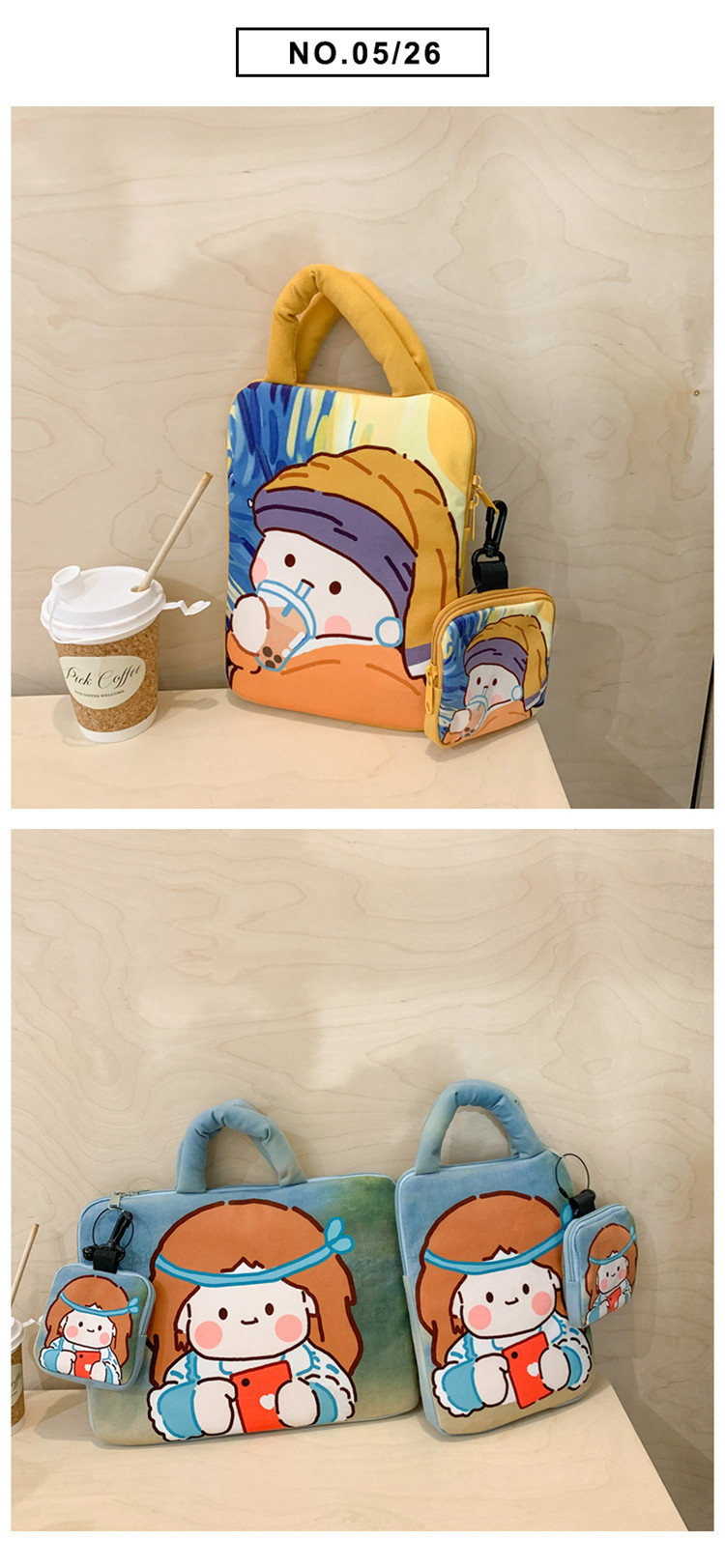 Ins 만화 휴대용 패드 11inch 태블릿 가방 14inch 노트북 가방 라이너 보호 가방 컴퓨터 가방스토어 가기