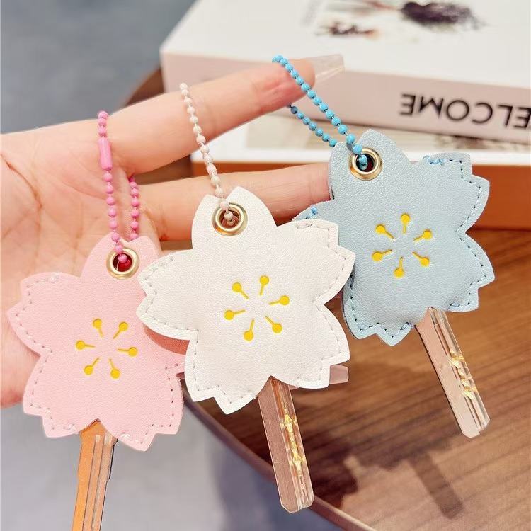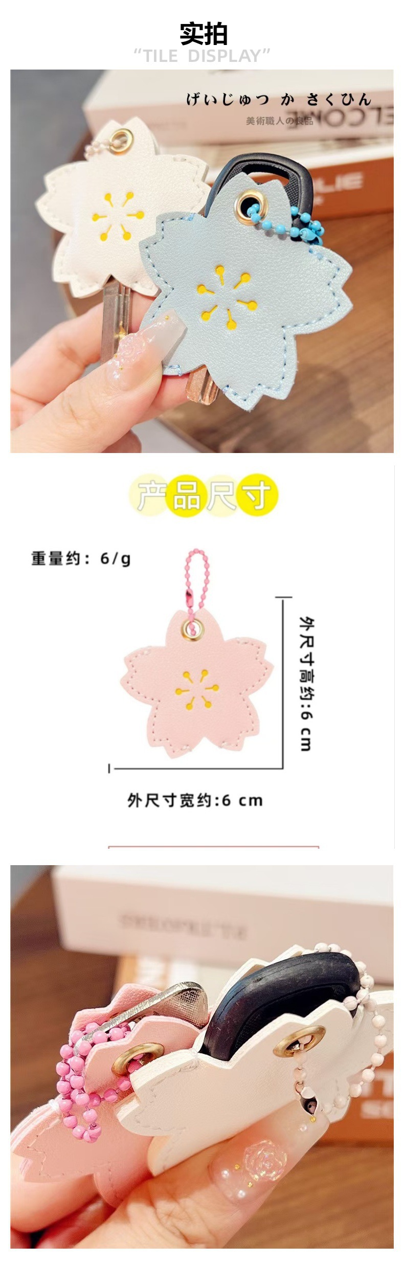 벚꽃 스타일 가정용 도난 방지 카드 케이스 꽃잎 모양의 유도 카드 보호 커버 가죽 키 체인 펜던트스토어 가기