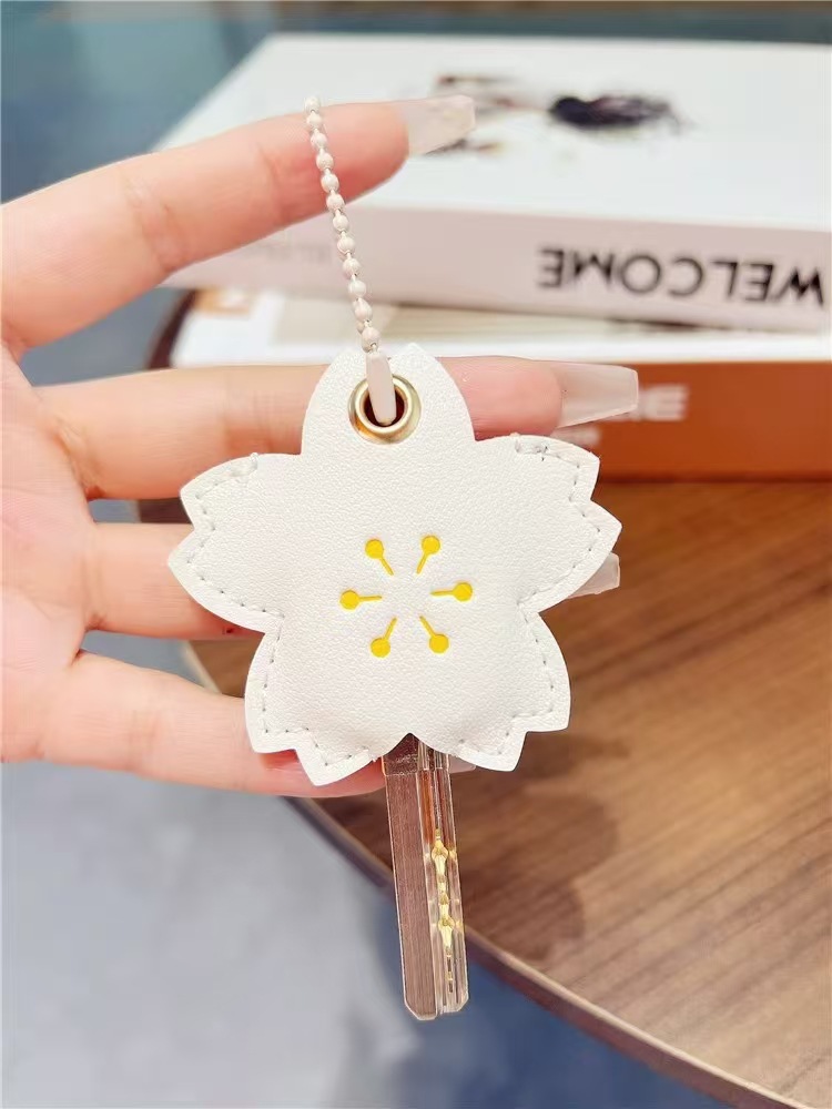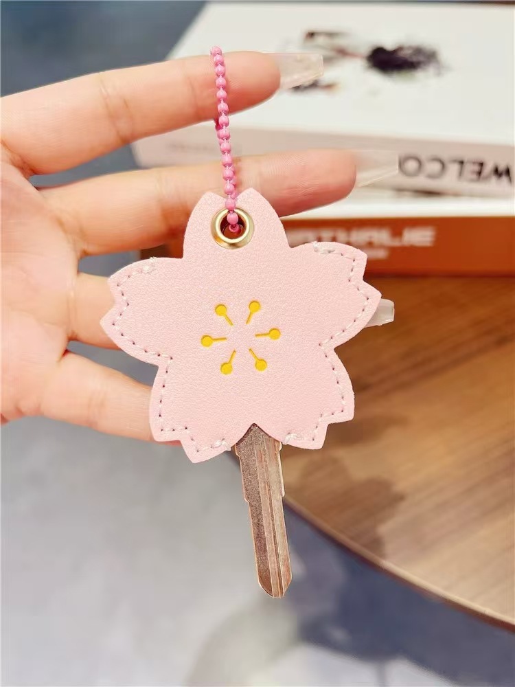 벚꽃 스타일 가정용 도난 방지 카드 케이스 꽃잎 모양의 유도 카드 보호 커버 가죽 키 체인 펜던트