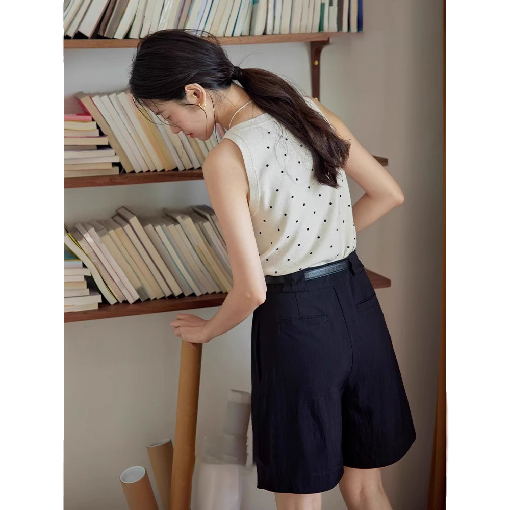 네이비/아이보리 웨이브 도트 조끼 슬링 여성 여름 프렌치 레트로 민소매 아우터 탑