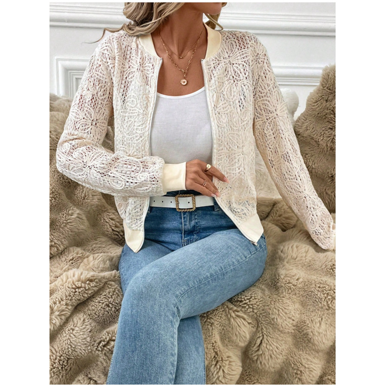 유럽과 미국은 국경을 넘어 2025 봄 새로운 우아한 여성 레이스 스티칭 긴 소매 야구 칼라 재킷 재킷 코트