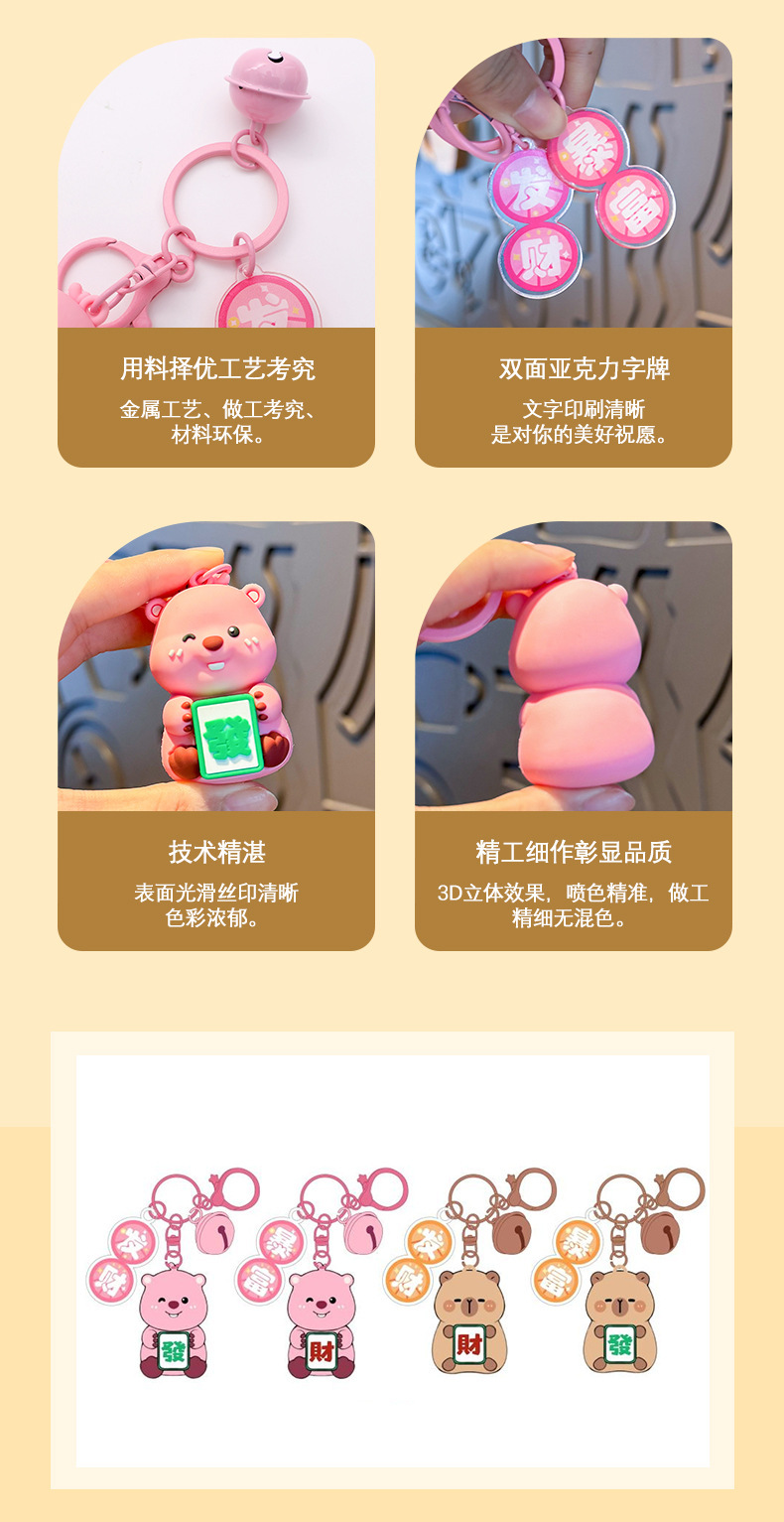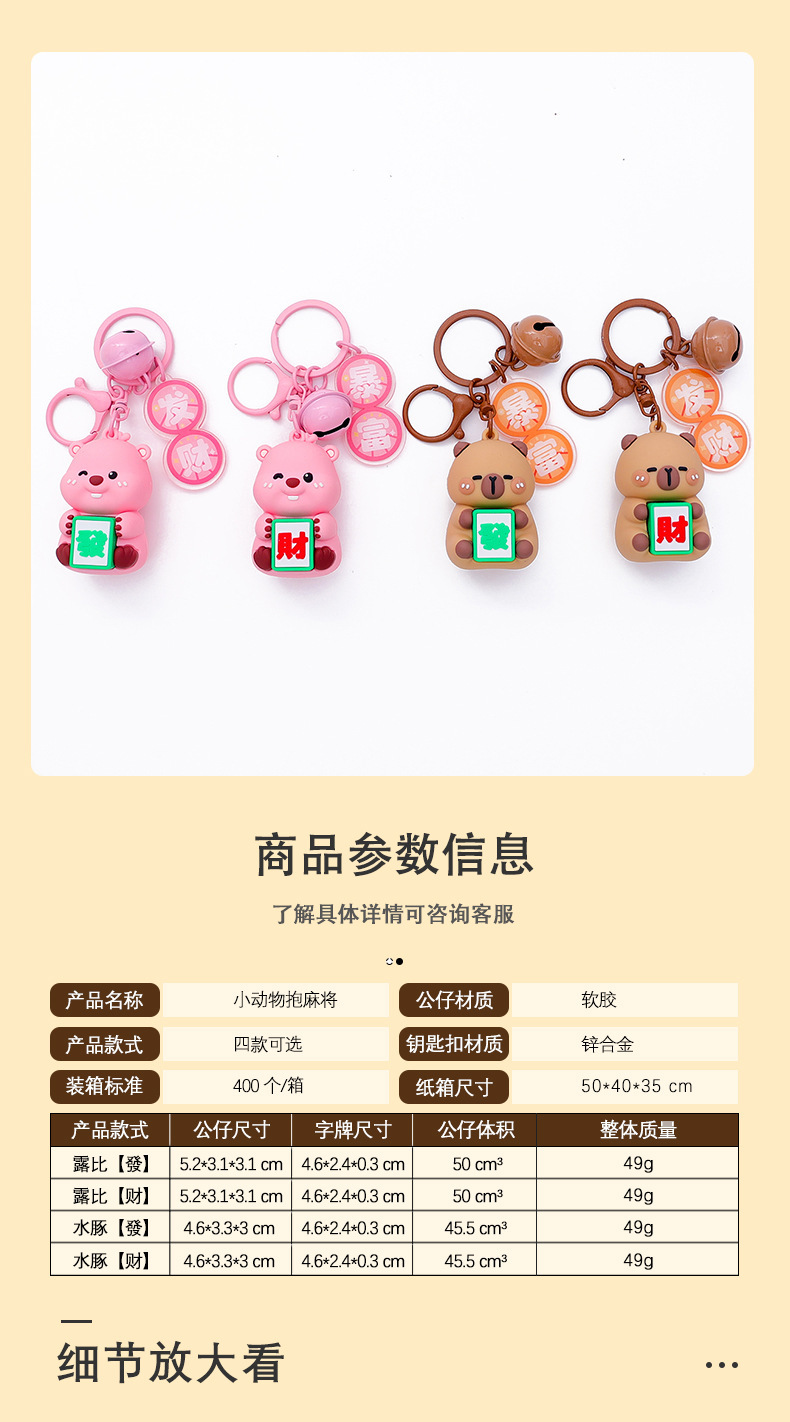 카피 바라 마작 키 체인 커플 가방 펜던트 리치 루피 자동차 키 체인 작은 선물 도매