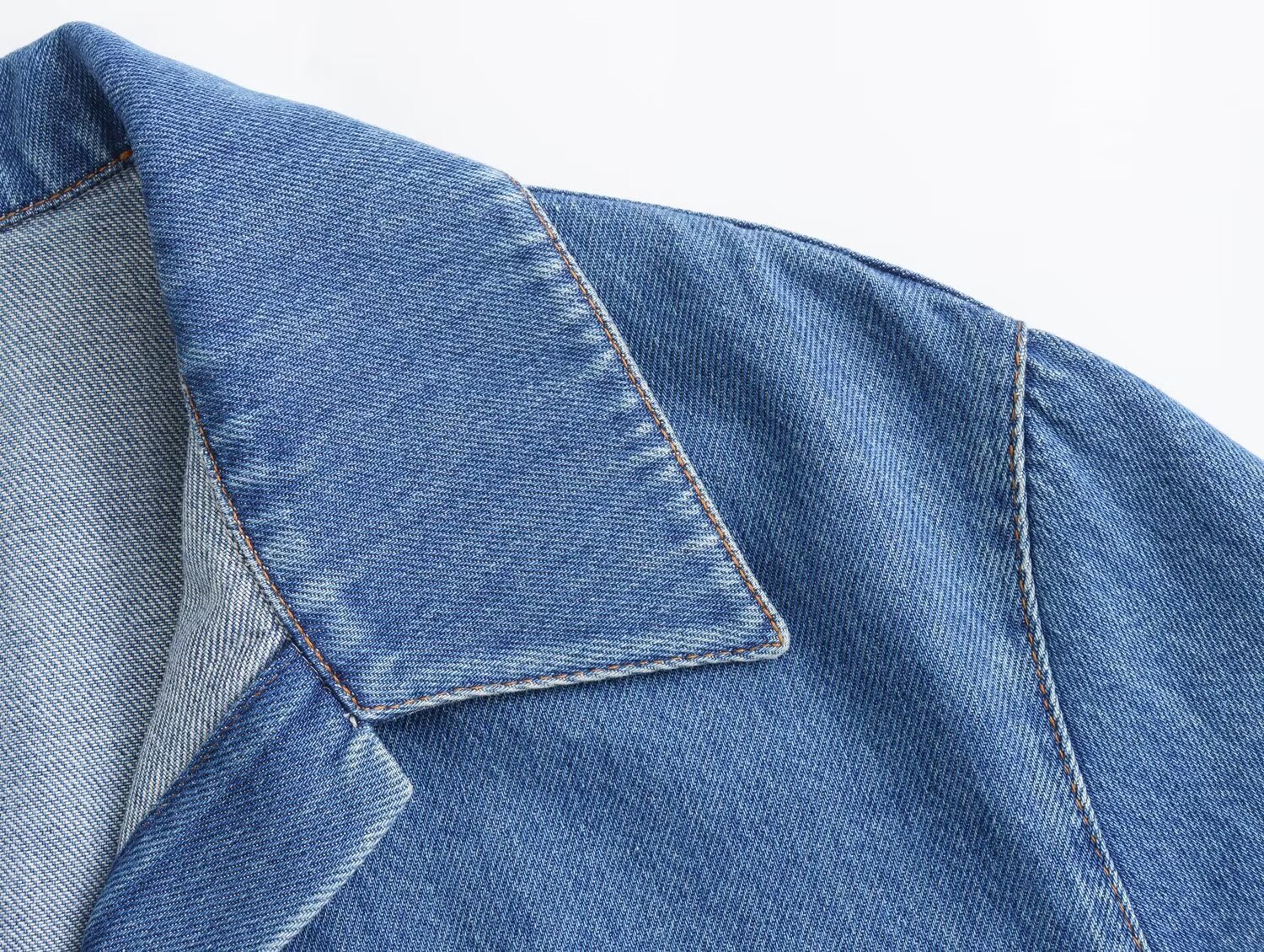 欧美外贸批发2024夏新款女装水洗蓝牛仔宽松衬衫牛仔裤套装女스토어 가기