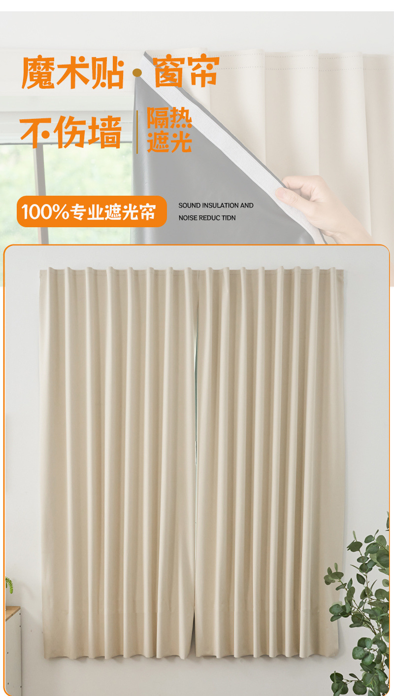 임대 주택 커튼 전체 음영 침실 베이 창 펀치 무료 설치 벨크로 접착 음영 작은 창 짧은 커튼스토어 가기