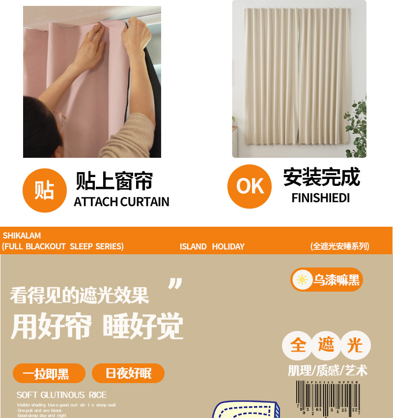 임대 주택 커튼 전체 음영 침실 베이 창 펀치 무료 설치 벨크로 접착 음영 작은 창 짧은 커튼