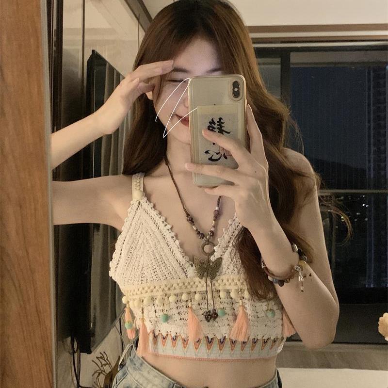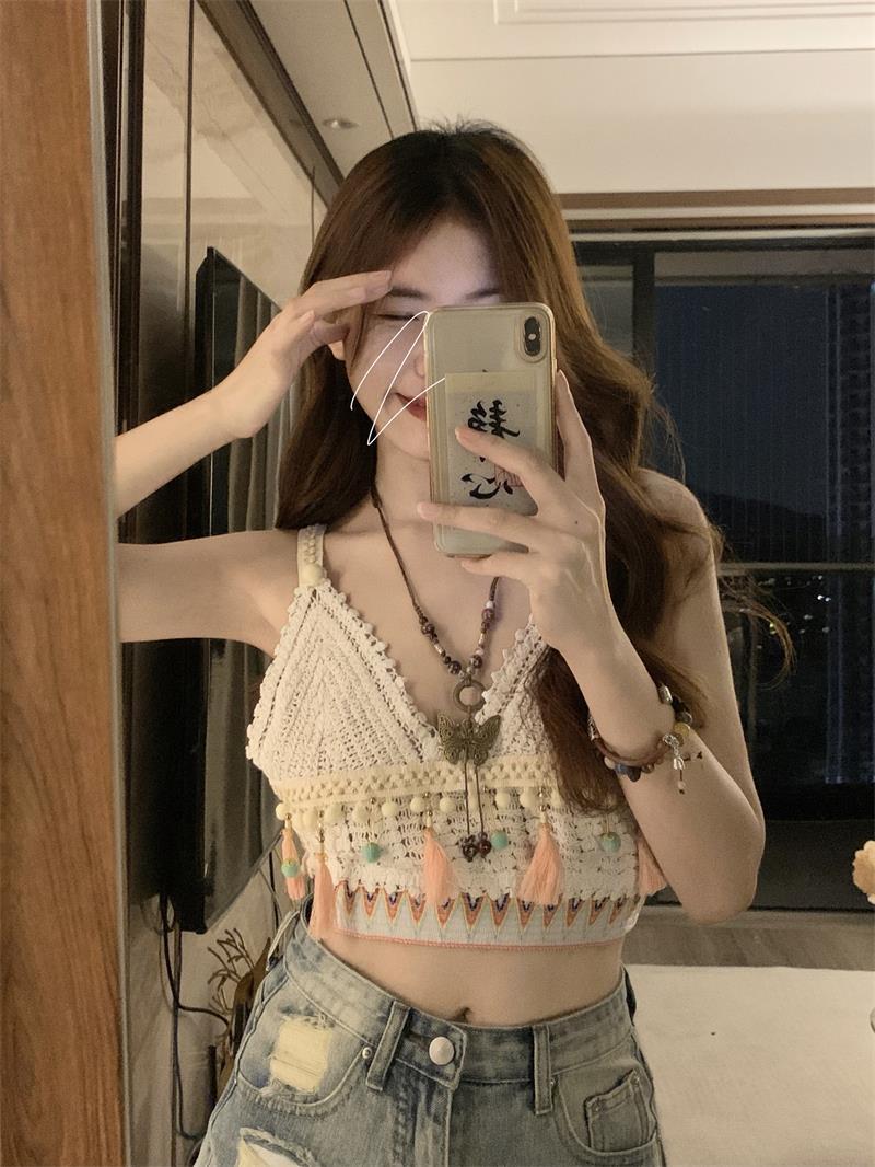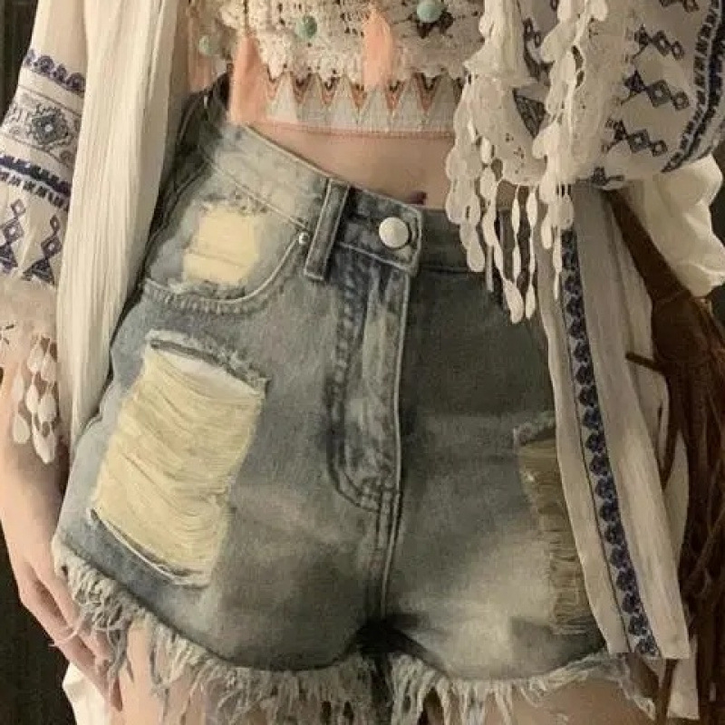 여름 새로운 보헤미안 스파이스 걸 태슬 할로우 스트랩 수 놓은 목도리 카디건 데님 반바지 3 피스 세트스토어 가기