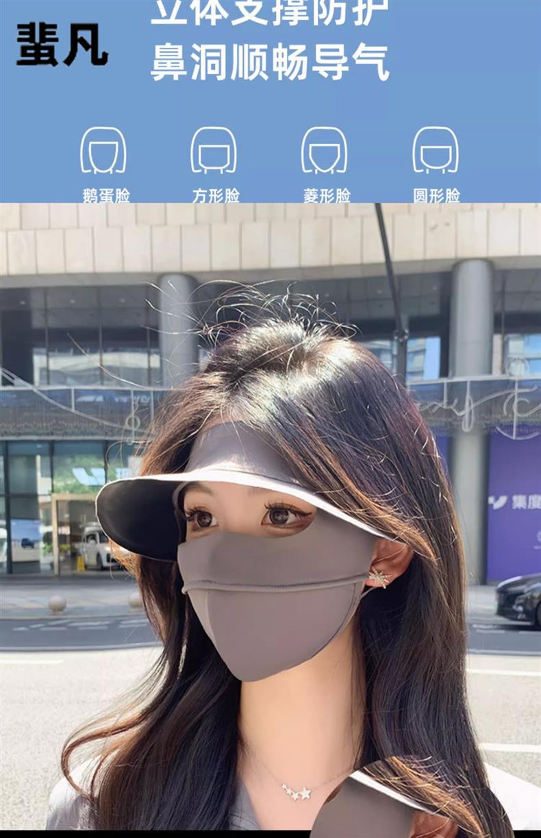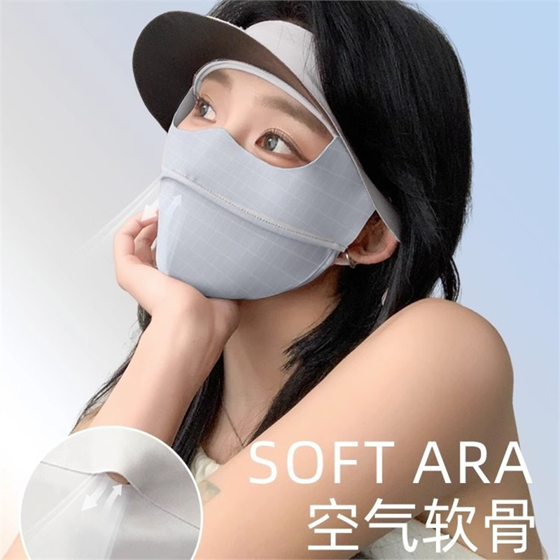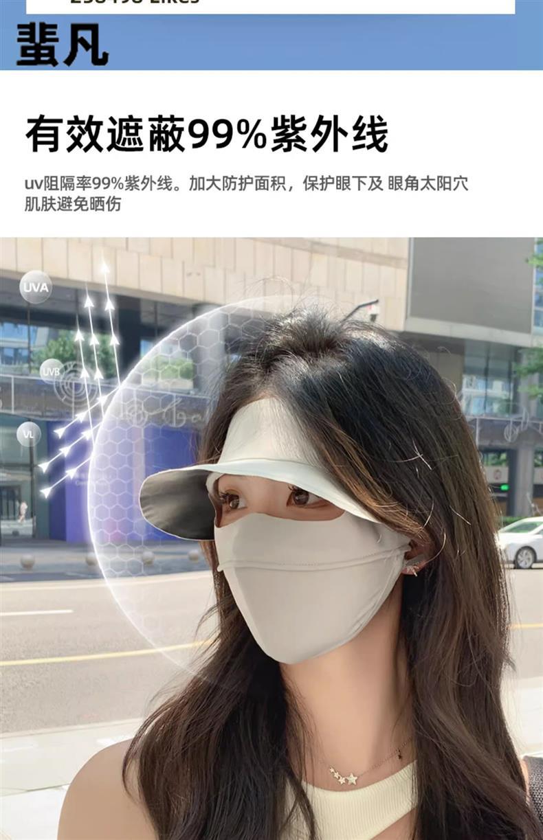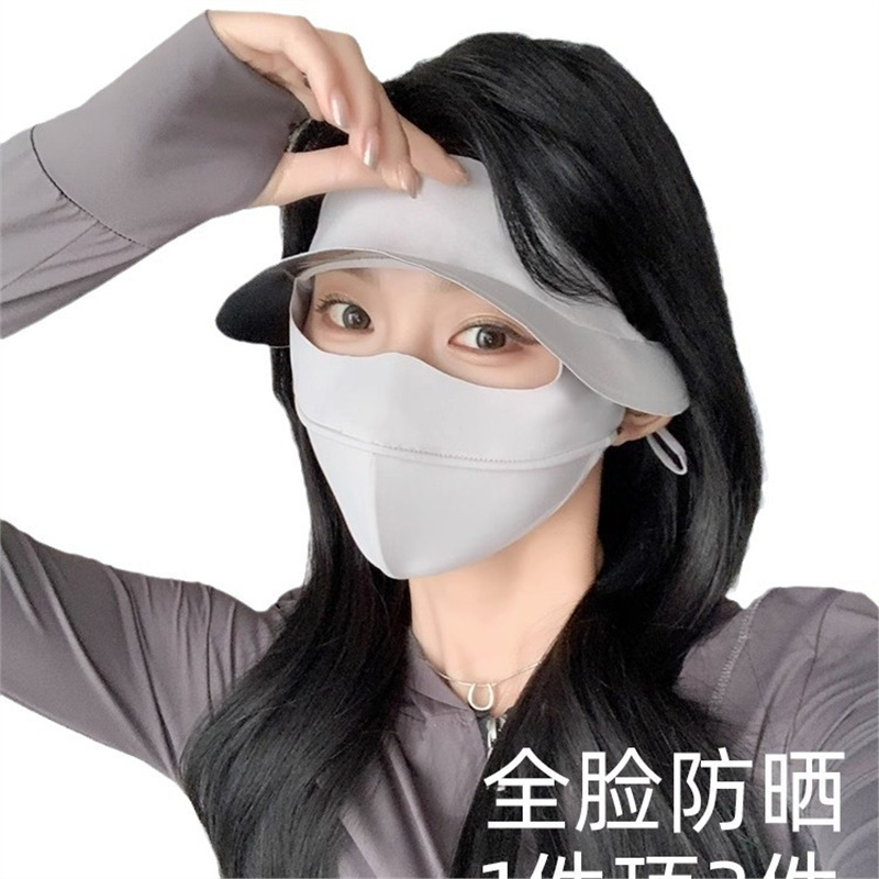여름 얼음 실크 마스크 UV 보호 야외 차양 목 보호 통기성 모자 테두리 전체 얼굴 거즈 마스크스토어 가기