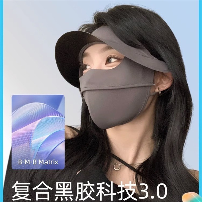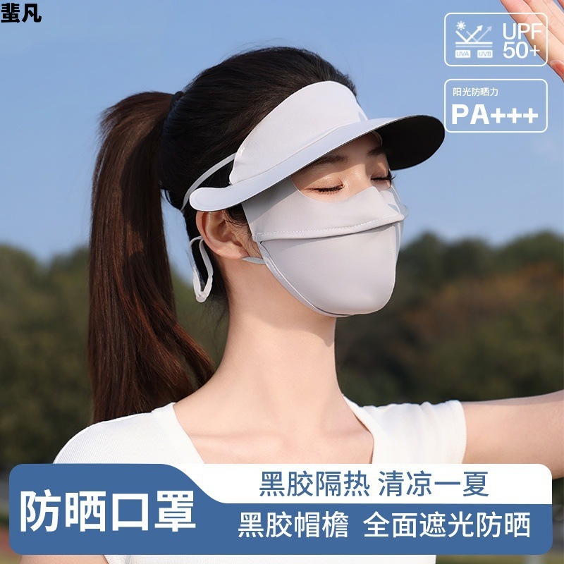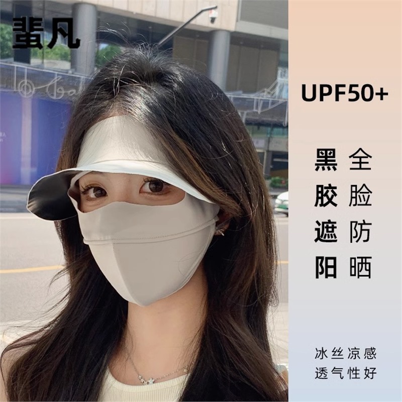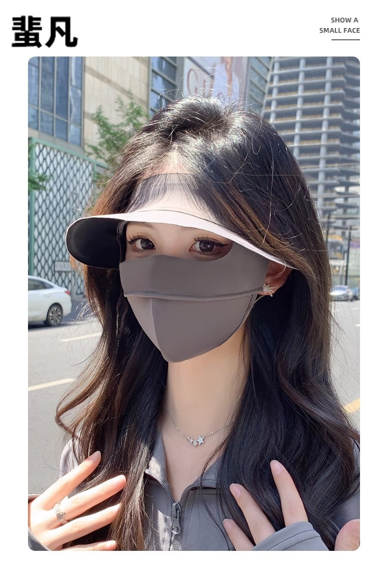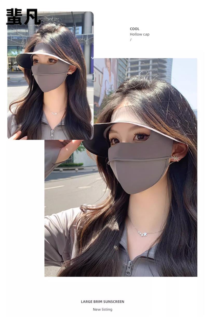 여름 얼음 실크 마스크 UV 보호 야외 차양 목 보호 통기성 모자 테두리 전체 얼굴 거즈 마스크