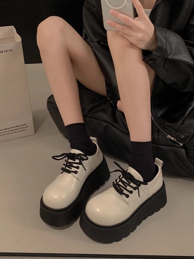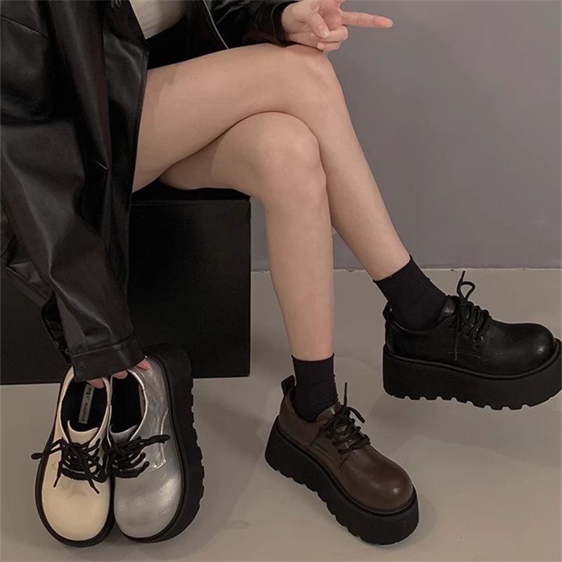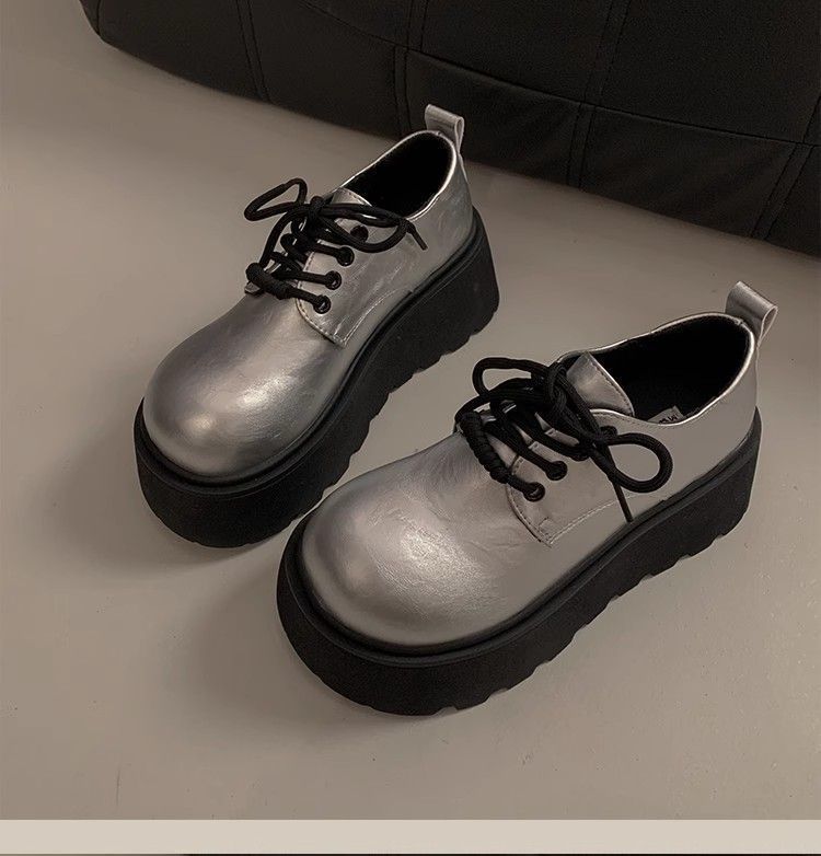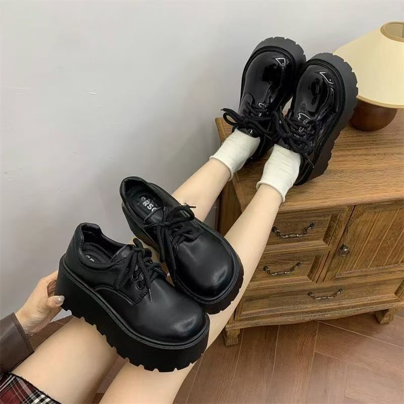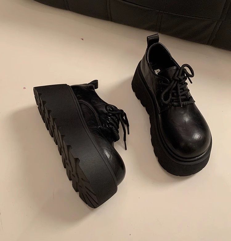 빈티지 블랙 영국 스타일 슈퍼 소프트 캐주얼 작은 가죽 신발 여성의 높이 증가 2025 새로운 봄과 가을 매칭 스커트 폭발 단층 신발