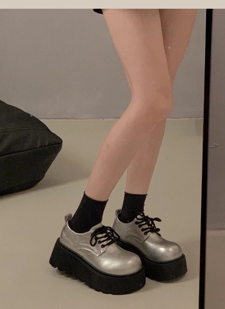 빈티지 블랙 영국 스타일 슈퍼 소프트 캐주얼 작은 가죽 신발 여성의 높이 증가 2025 새로운 봄과 가을 매칭 스커트 폭발 단층 신발스토어 가기