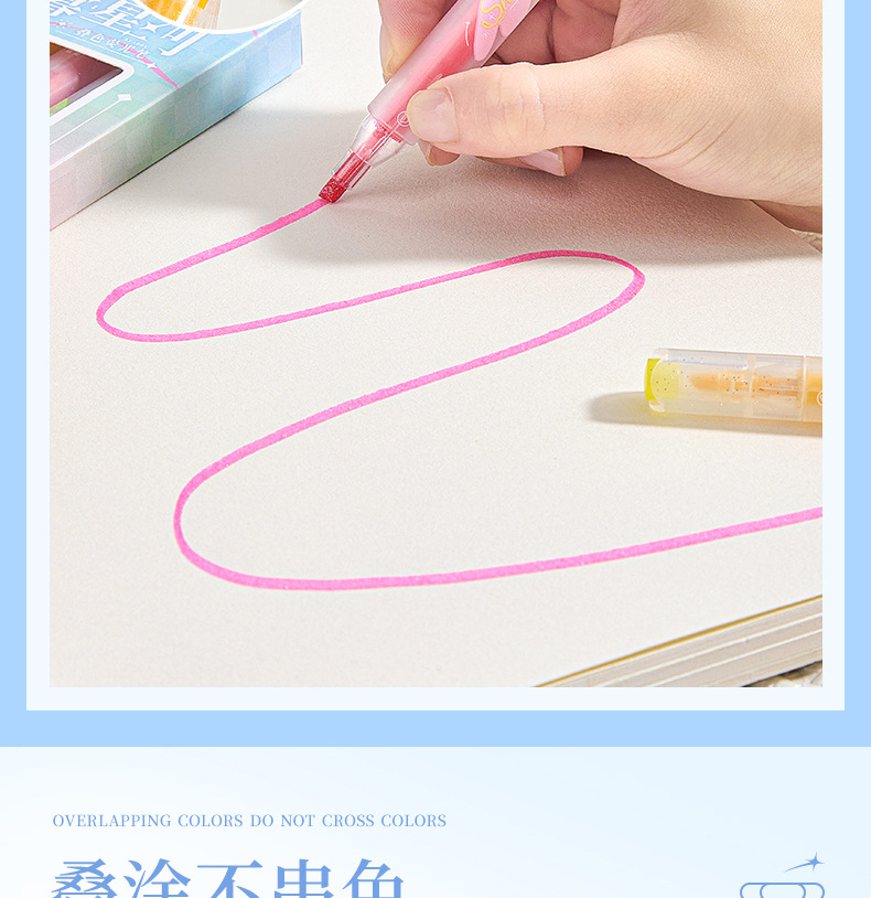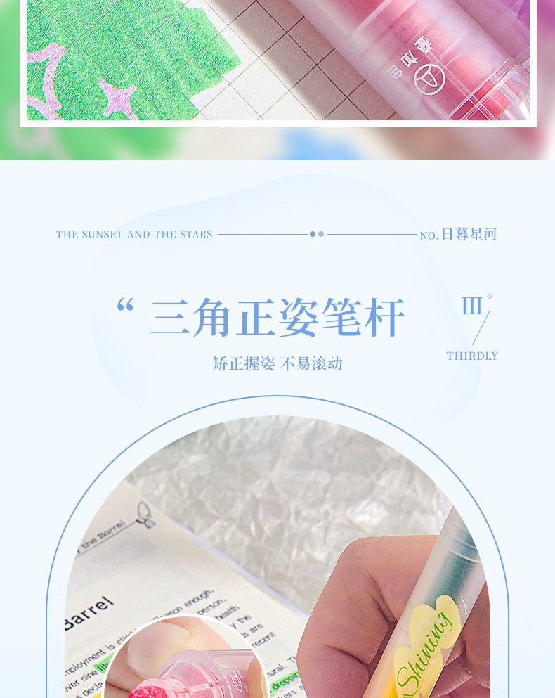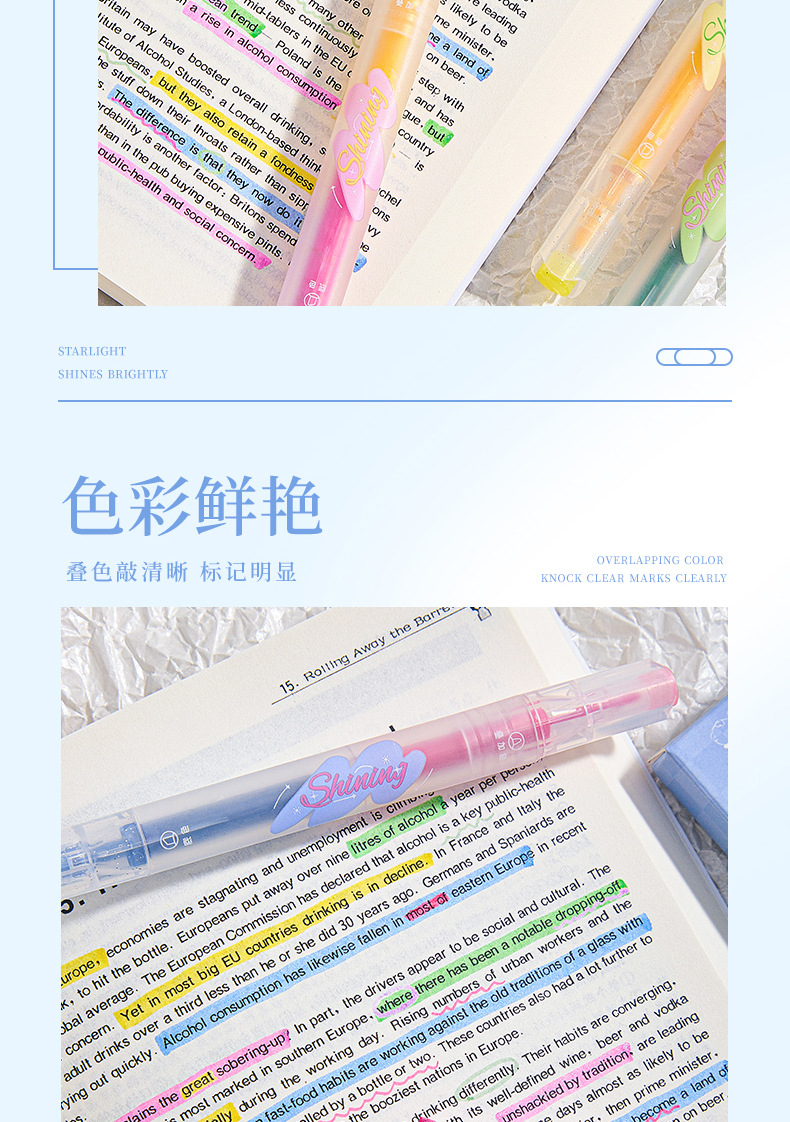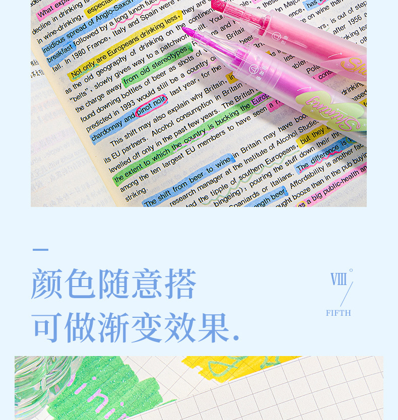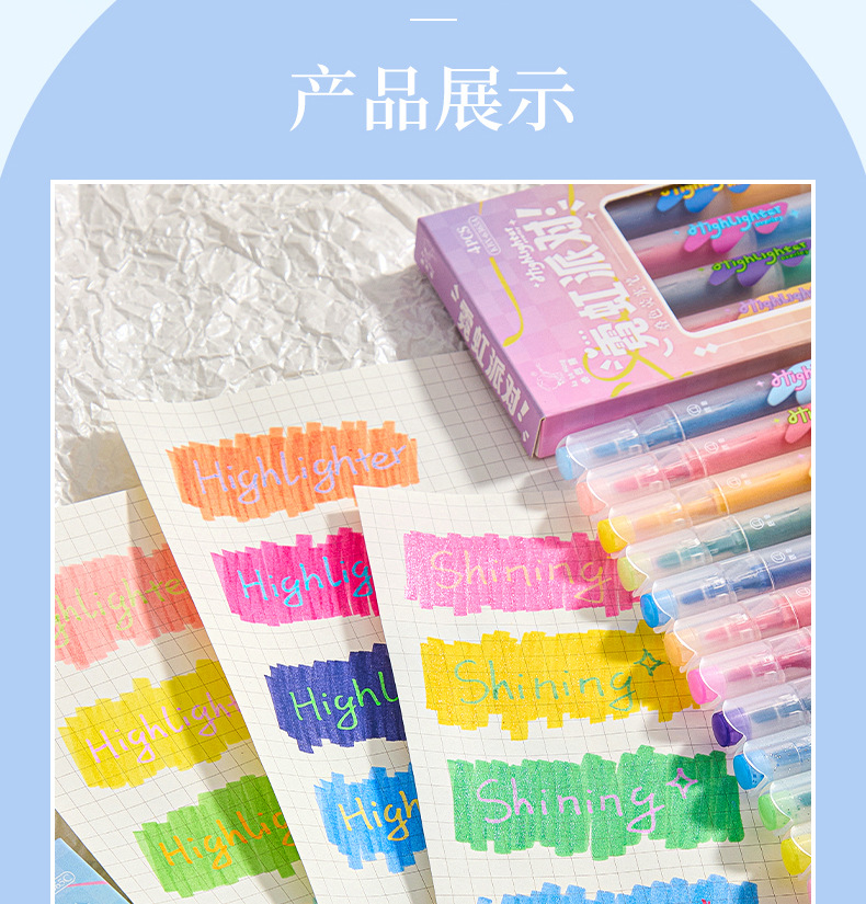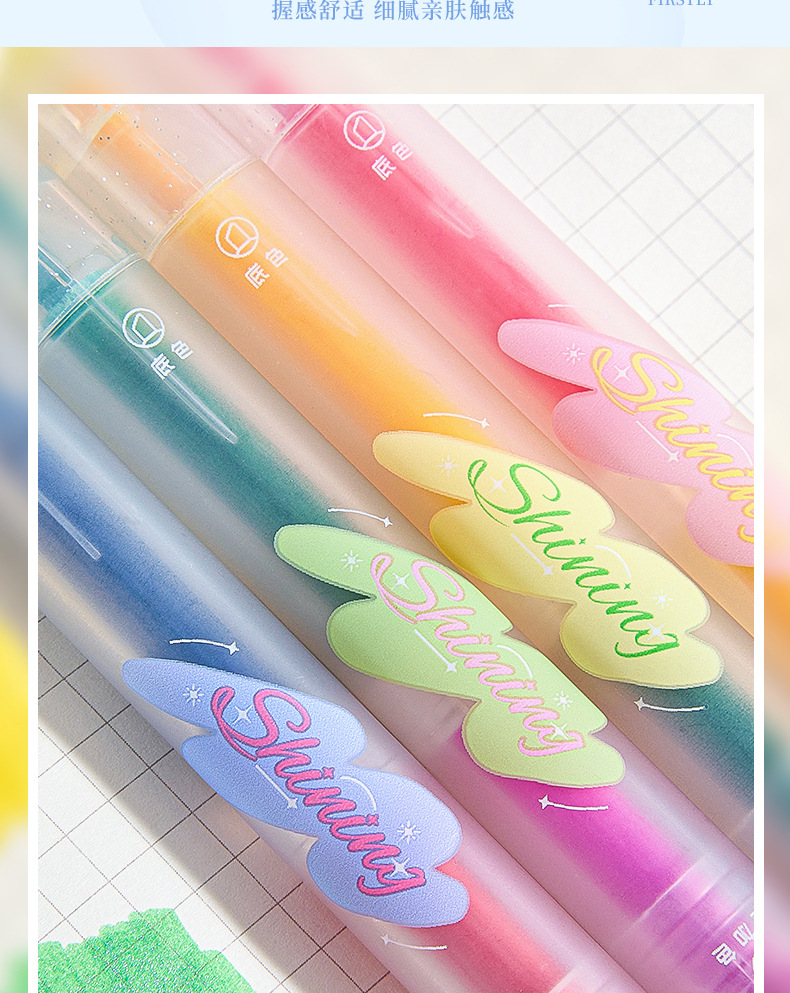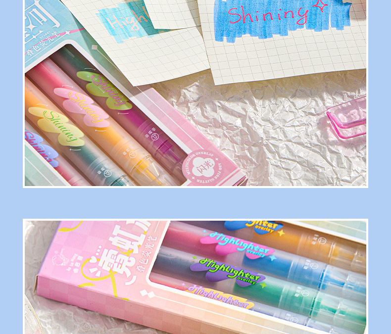 반짝이는 컬러 키 마킹 펜 높은 컬러 값 그라디언트 형광 필기 펜 마킹이있는 멀티 컬러 더블 헤드 하이라이터