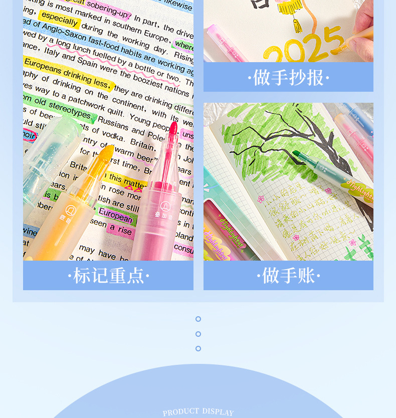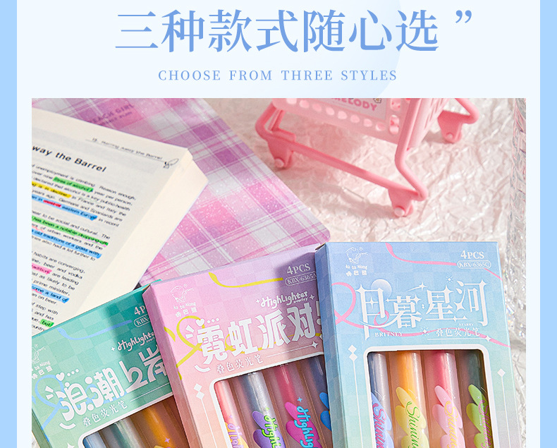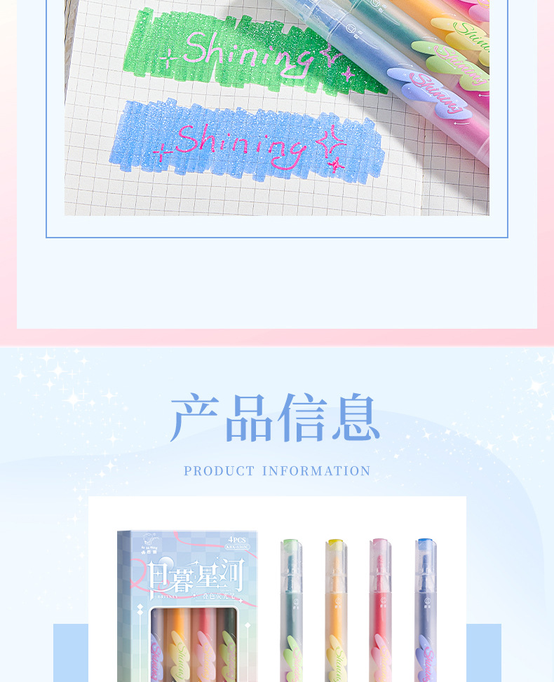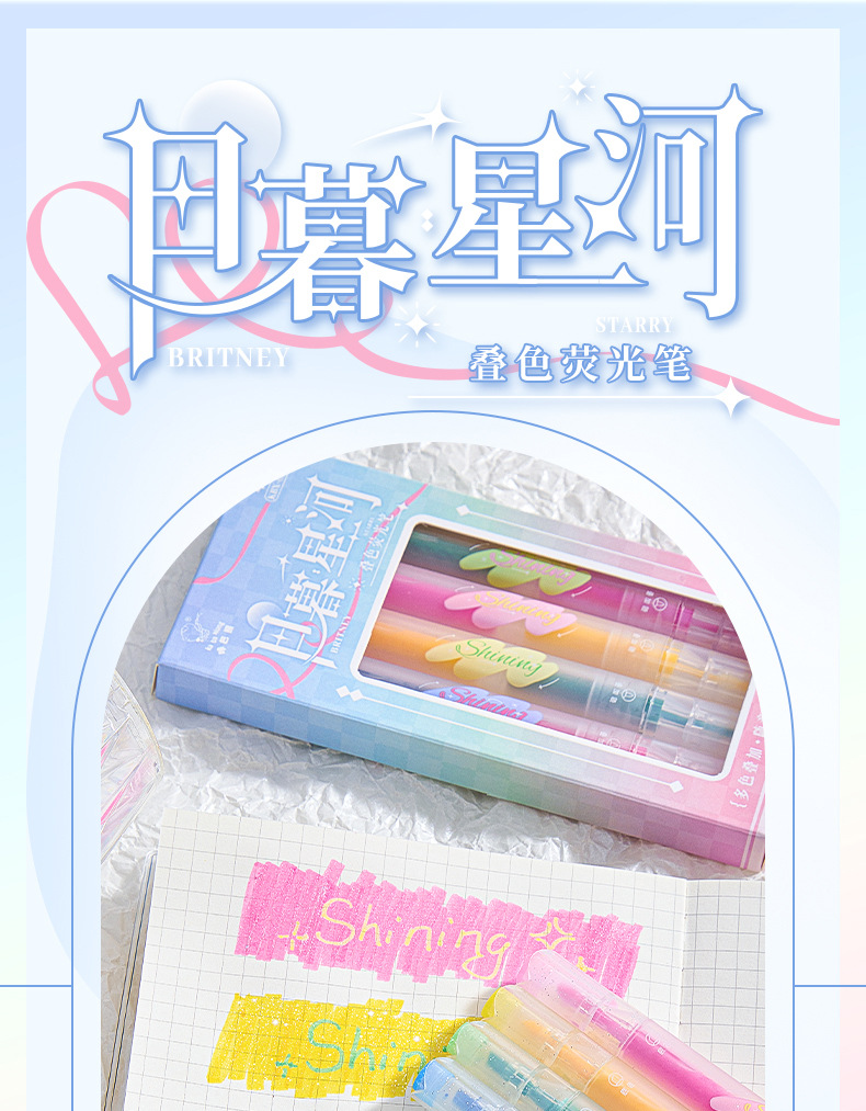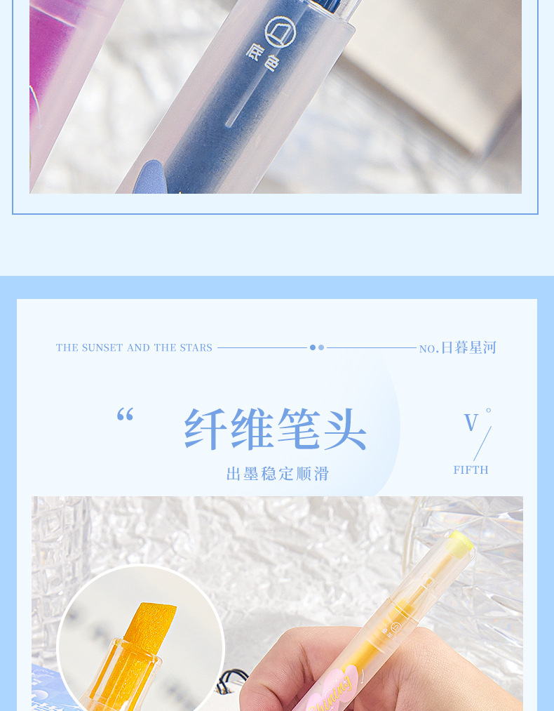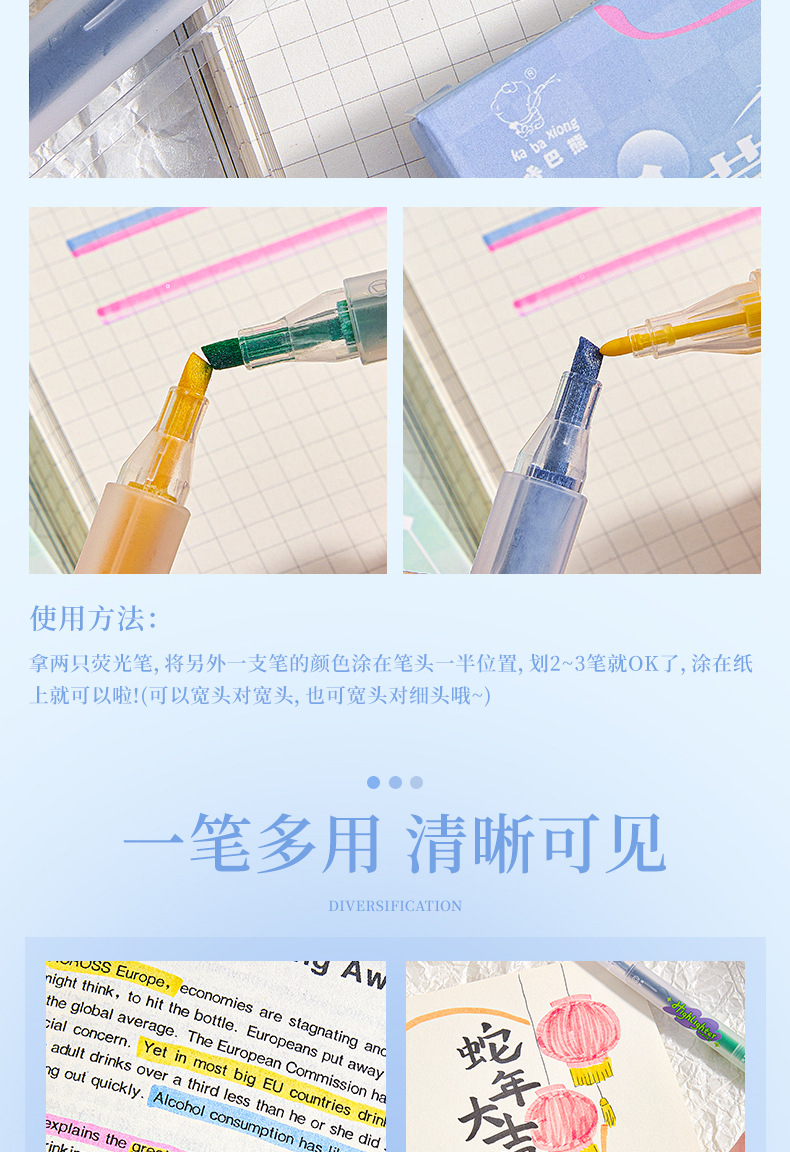 반짝이는 컬러 키 마킹 펜 높은 컬러 값 그라디언트 형광 필기 펜 마킹이있는 멀티 컬러 더블 헤드 하이라이터