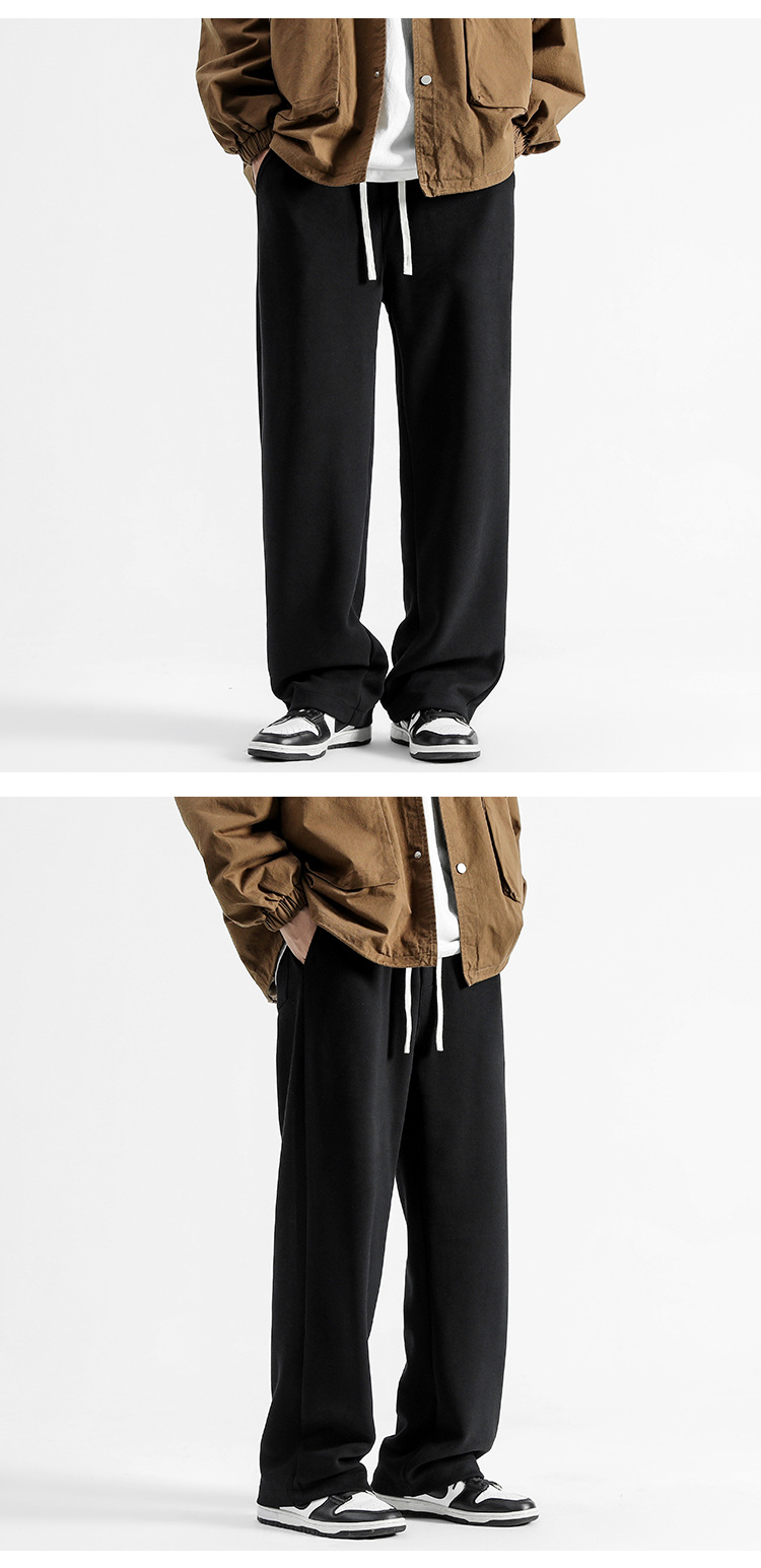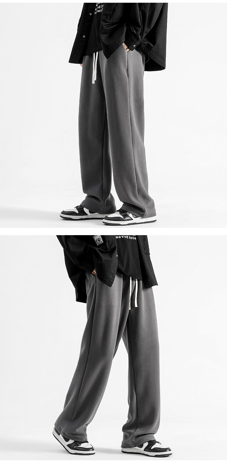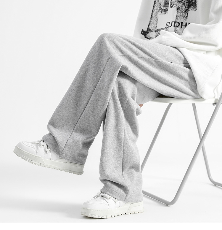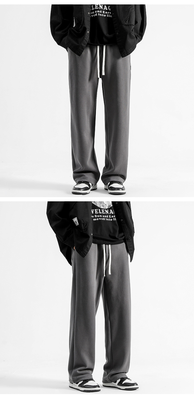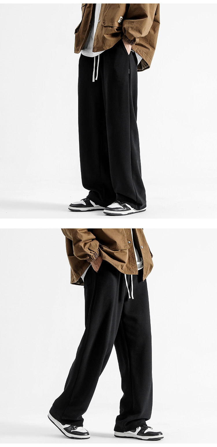 폭발 운동복 2023 새로운 가을 스트레이트 다리 바지 남자 홍콩 스타일 커플 느슨한 바지 빈 플레이트 솔리드 컬러 휴