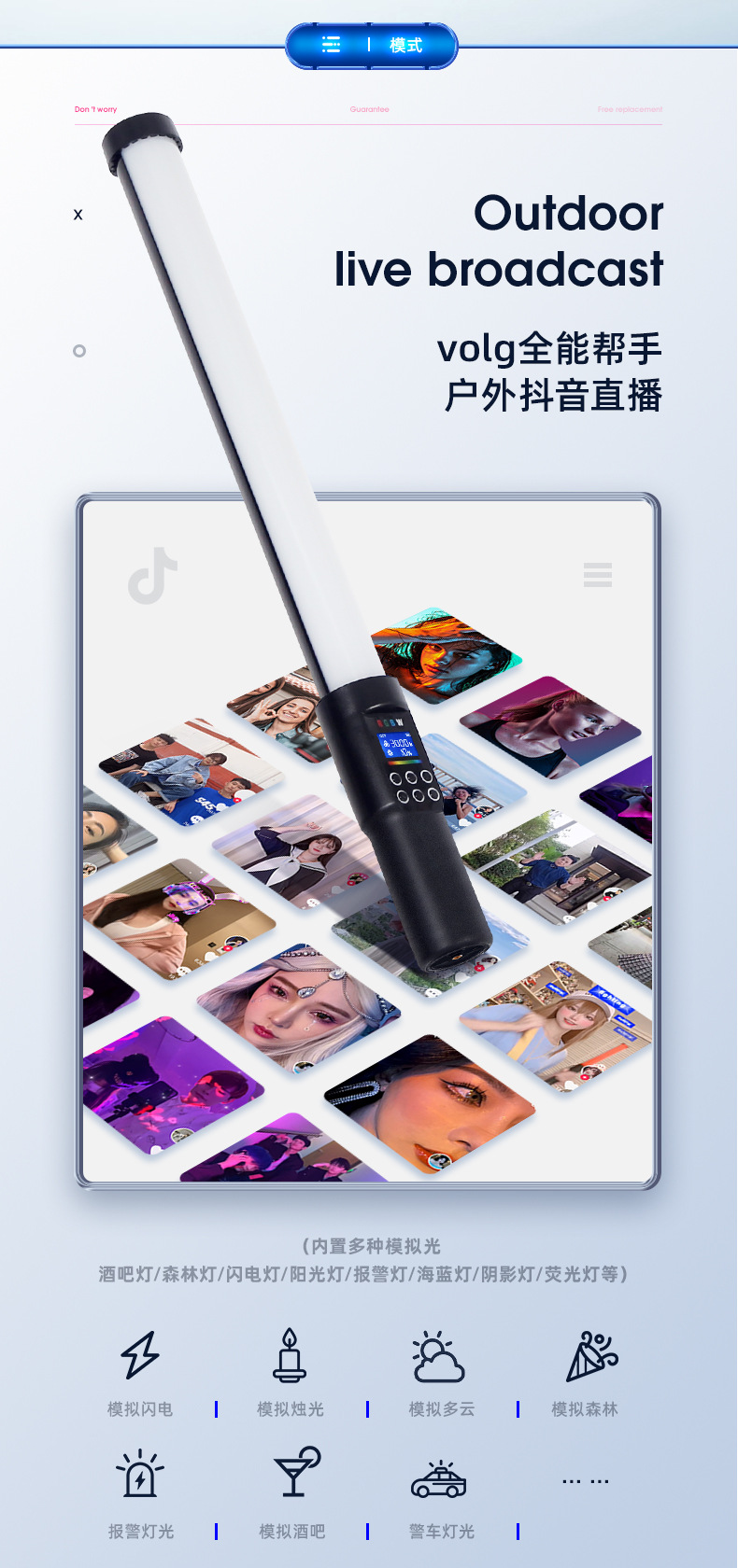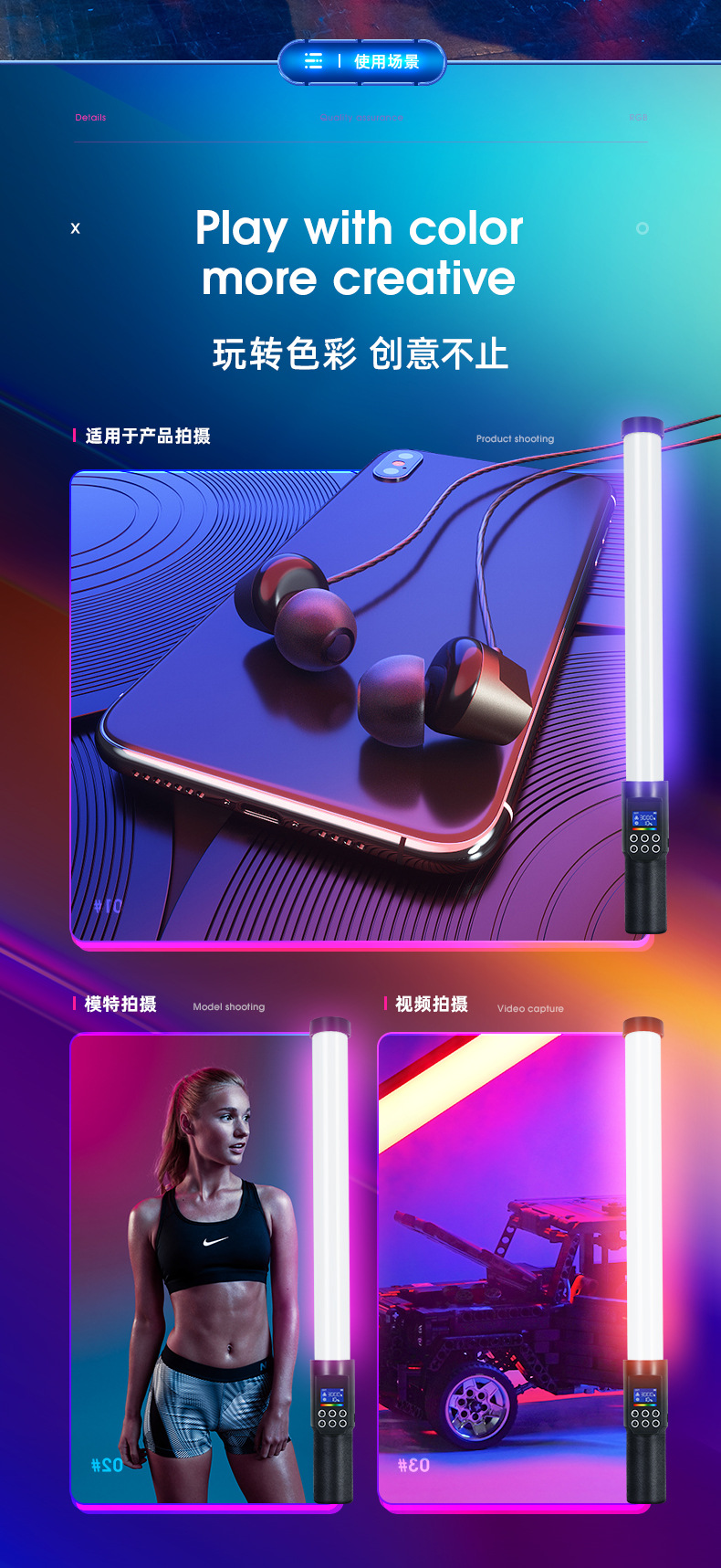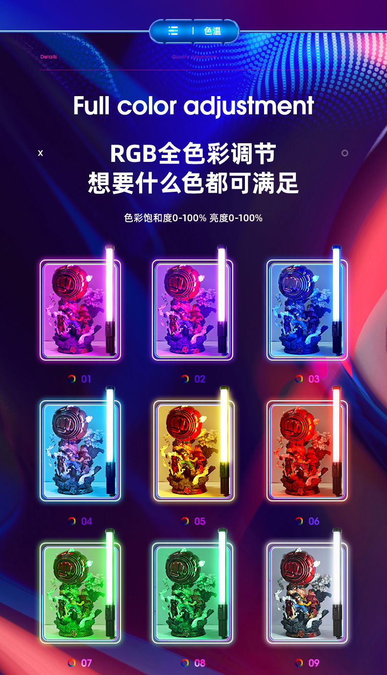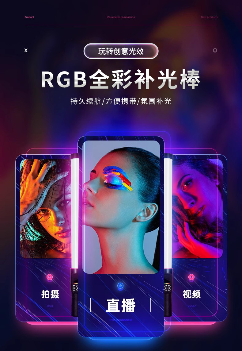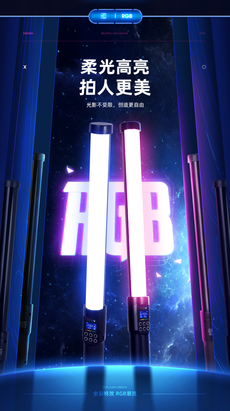 Rui Fu Tu RGB 사진 스틱 램프 휴대용 조명 컬러 풀 컬러 휴대용 아이스 램프 외부 비디오 라이브 뷰티스토어 가기