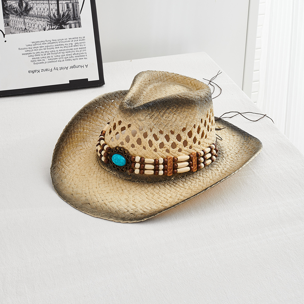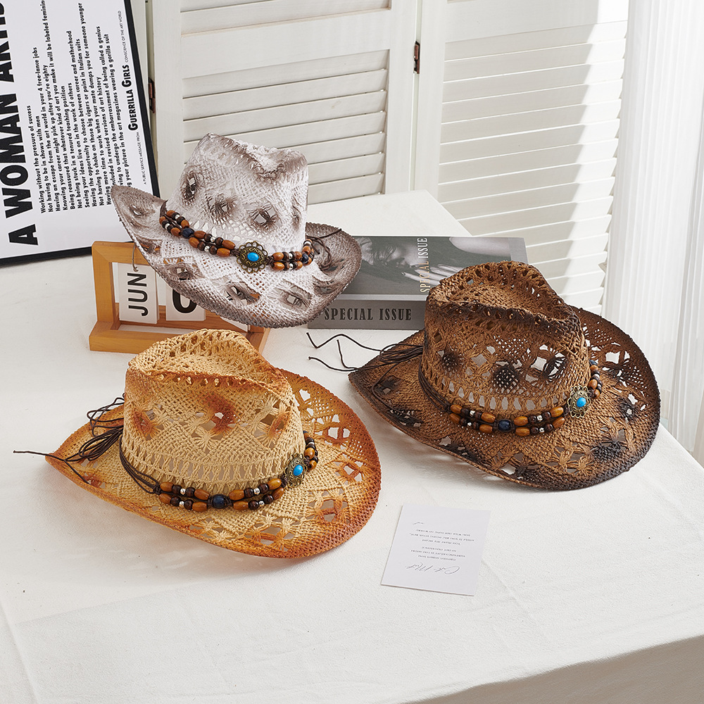 여름 재즈 톱 모자 국경 핫 판매 수제 밀짚 점진적 변화 할로우 컬러 스프레이 웨스턴 카우보이 모자 민족 스타일 햇빛스토어 가기