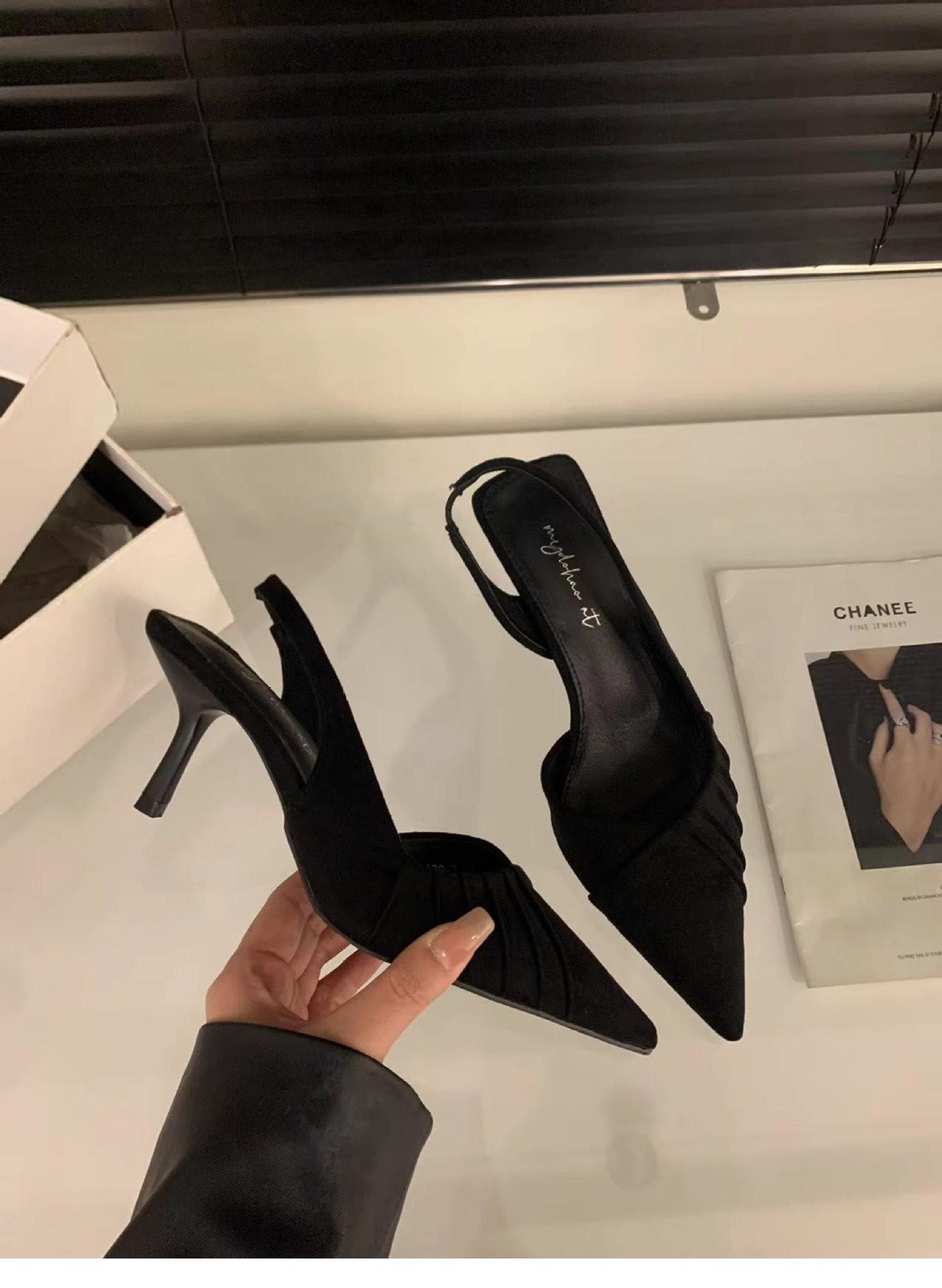 뾰족한 하이힐 블랙 올 매치 발가락 샌들 페어리 슈즈 2025 봄과 여름 프랑스 우아한 스커트 슈즈스토어 가기