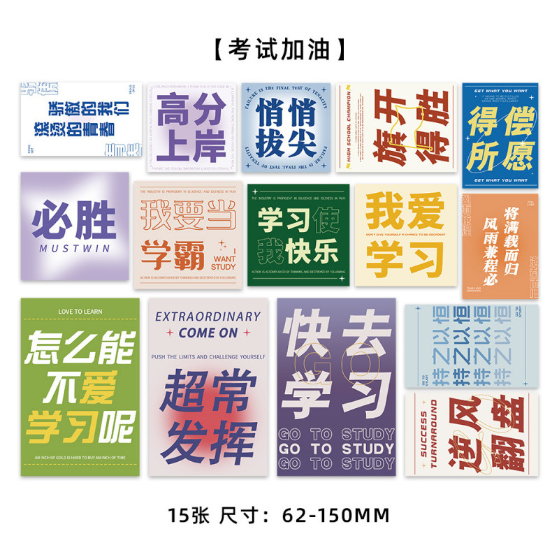 15 in 영감을주는 텍스트 시험 급유 예술 엽서 카드 벽 스티커 방 기숙사 벽 장식 공장