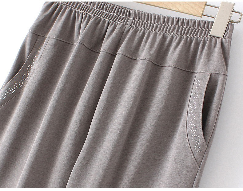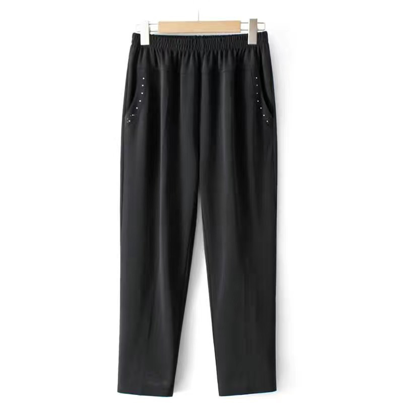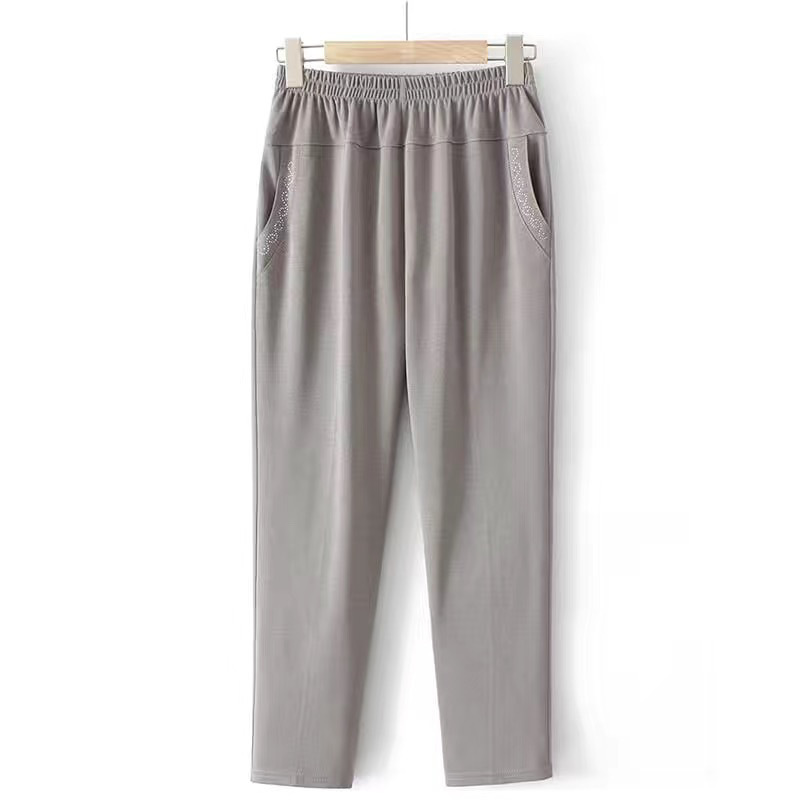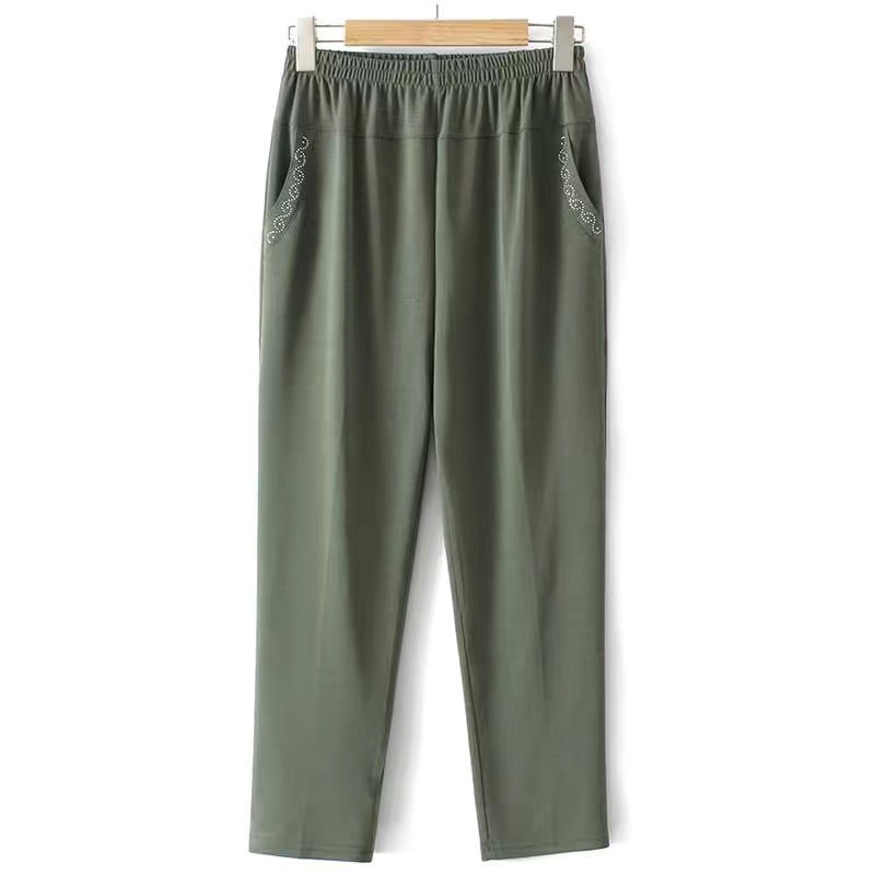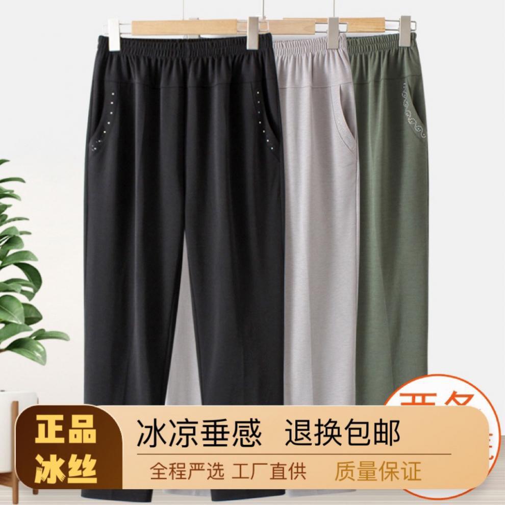 엄마의 바지 여름 얇은 중년 및 노인 여성 바지 스트레이트 튜브 느슨한 플러스 사이즈 할머니의 얼음 실크 자른 바지