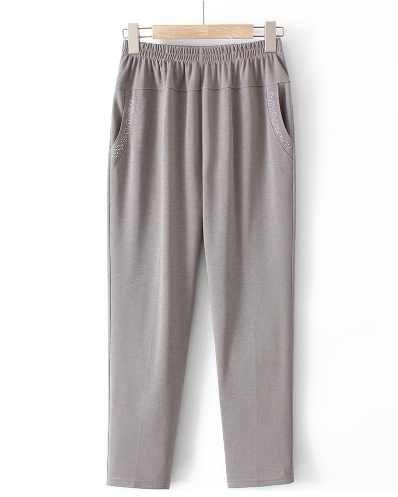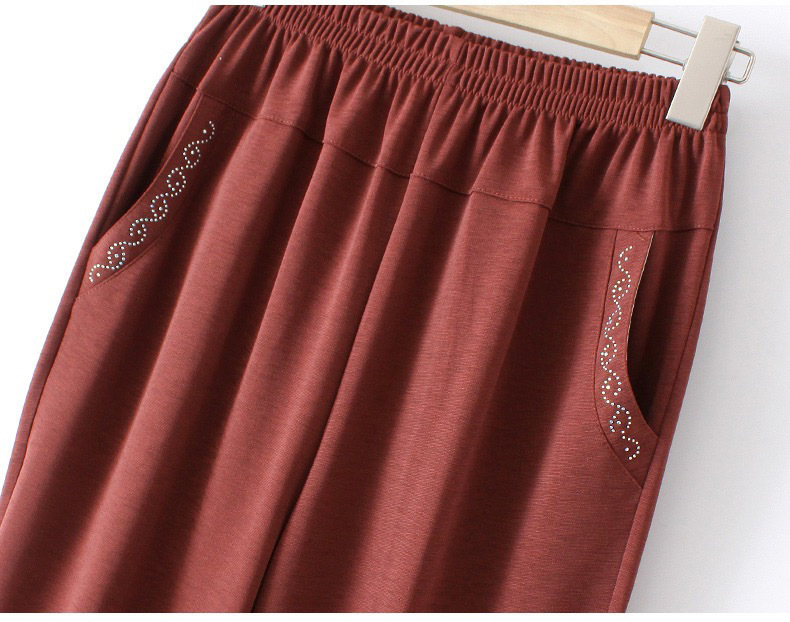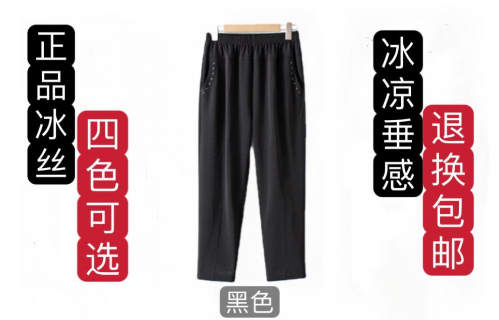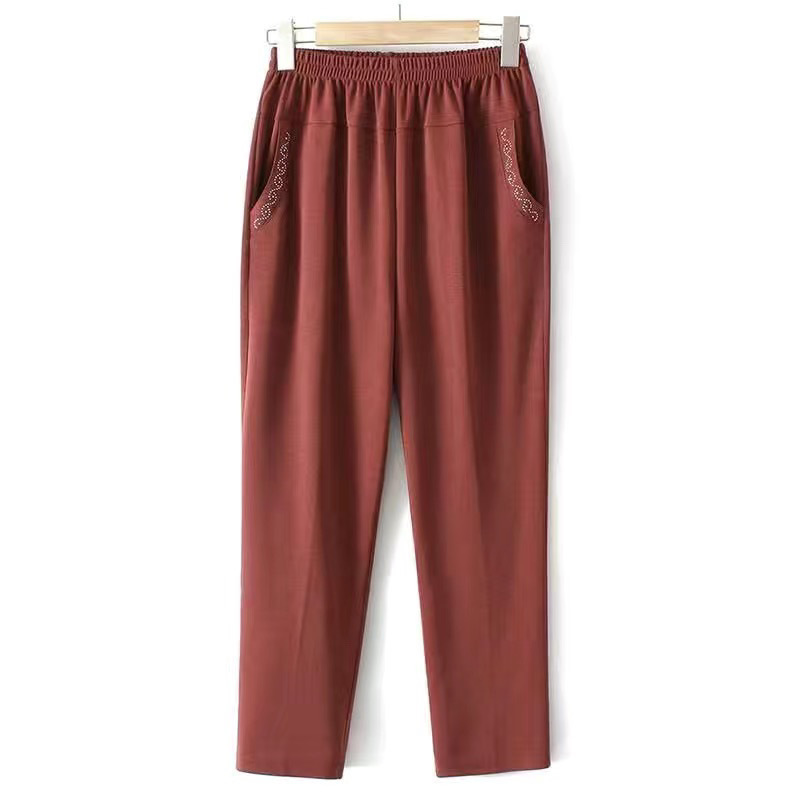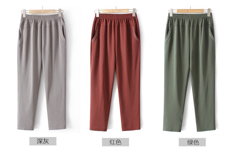 엄마의 바지 여름 얇은 중년 및 노인 여성 바지 스트레이트 튜브 느슨한 플러스 사이즈 할머니의 얼음 실크 자른 바지