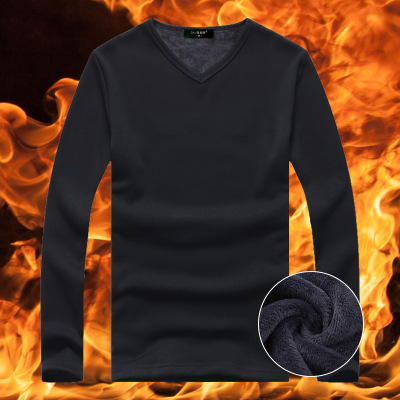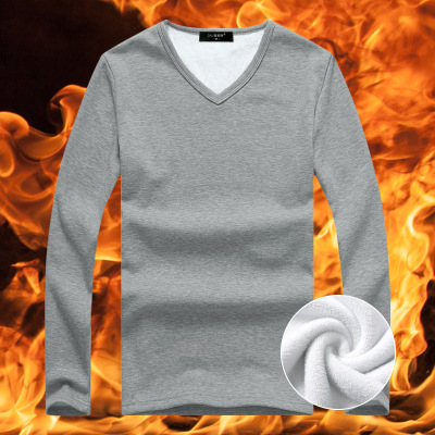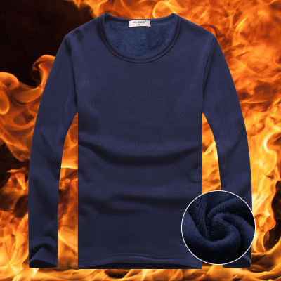 가을과 겨울 남자 열 속옷 남자의 두꺼운 기모 청소년 둥근 목 슬림핏 긴팔 티셔츠베이스 셔츠 탑