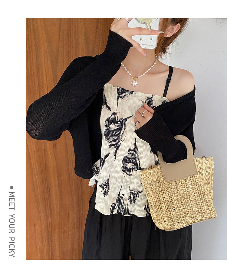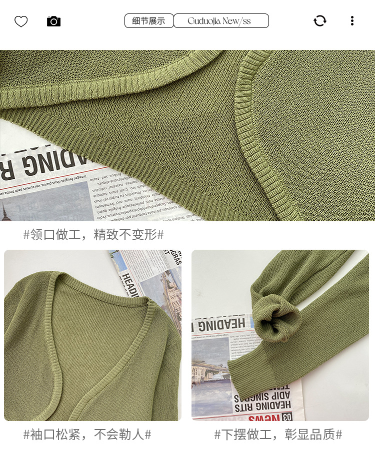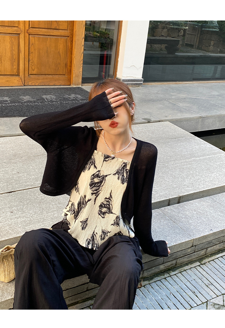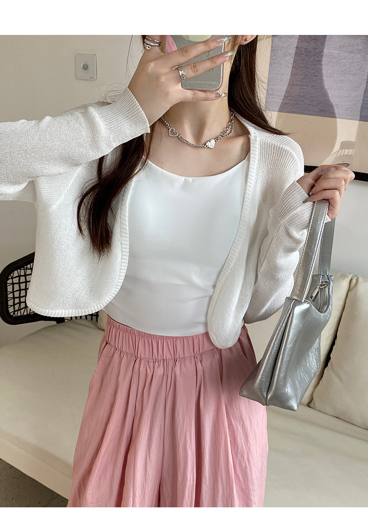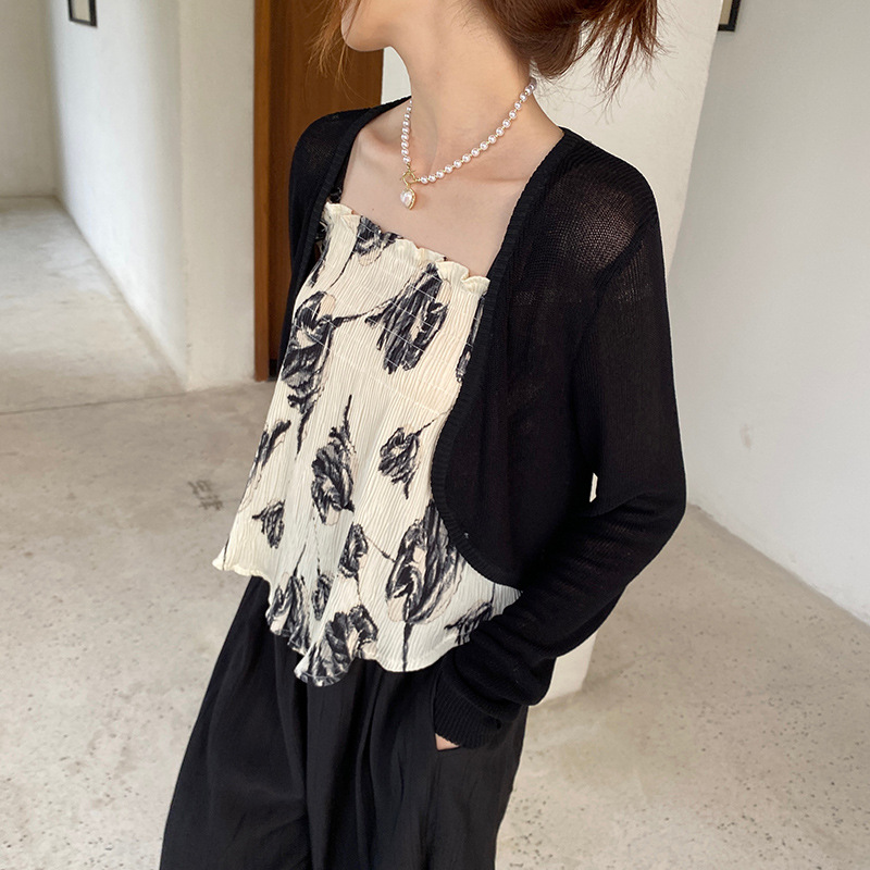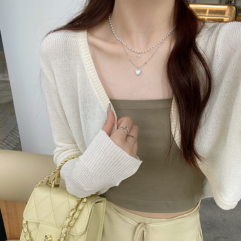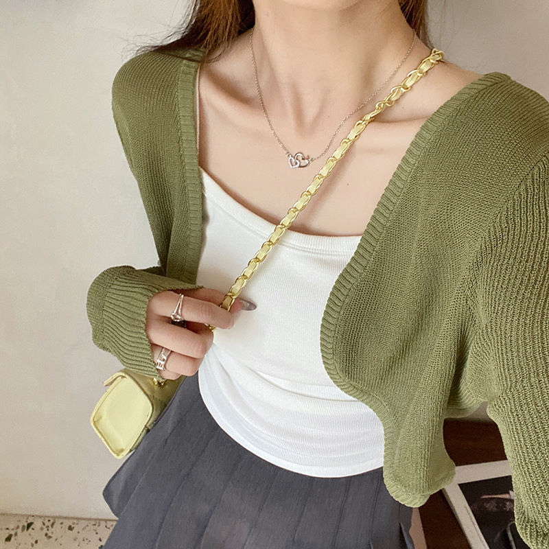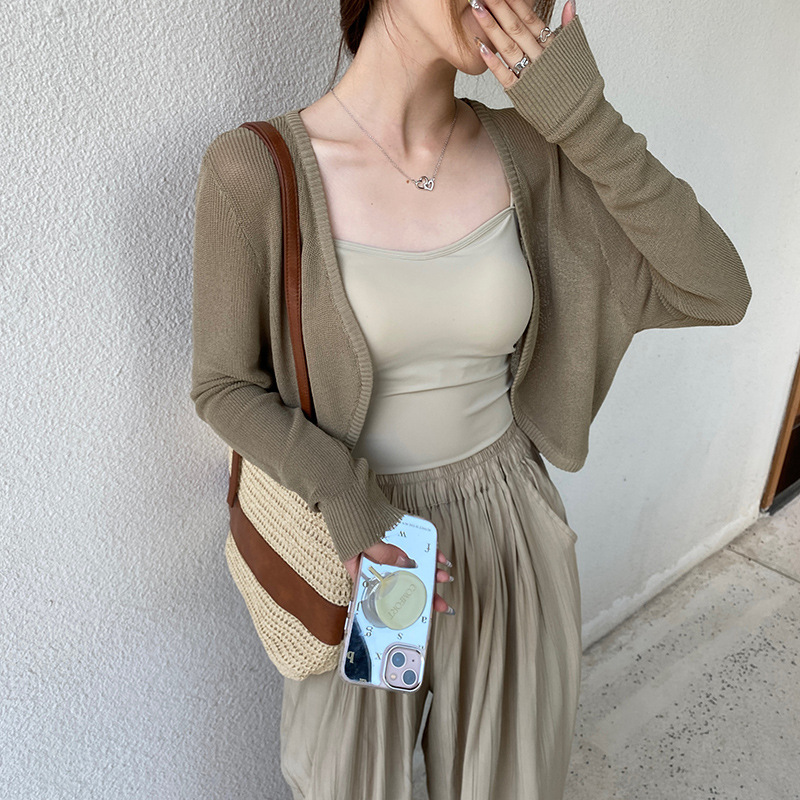 선스크린 블라우스 여성의 2025 년 여름 새로운 카디건 니트 코트 얇은 허리 코트 숄더 외부 쇼트 탑 트렌디