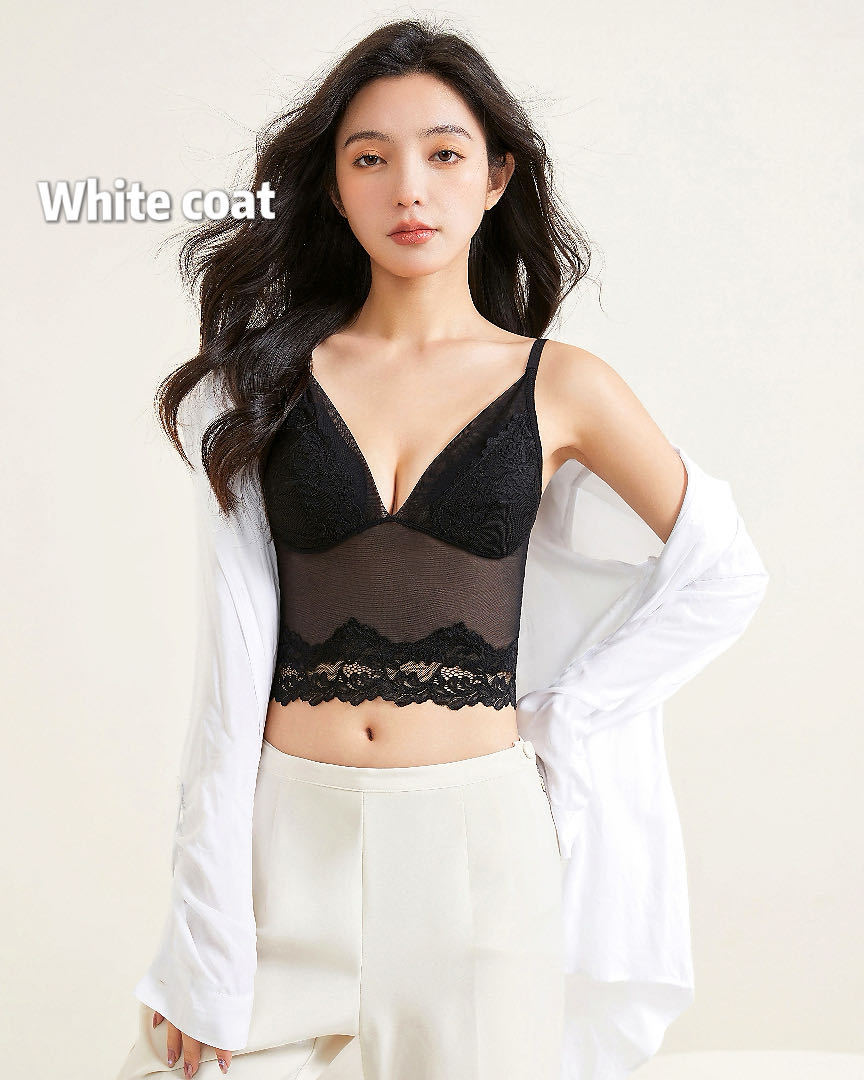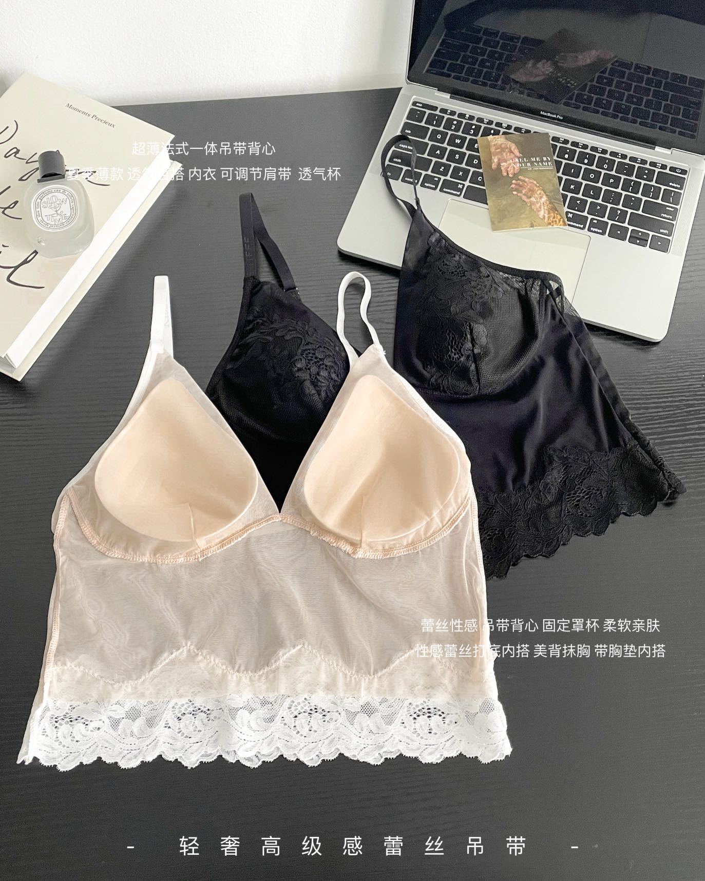 봄과 여름 새로운 프랑스 스타일 레이스 작은 슬링 아름다운 뒤로 고정 코스터 슬림-적합 모임 슬리밍 아우터 착용 스트랩리스 조끼스토어 가기