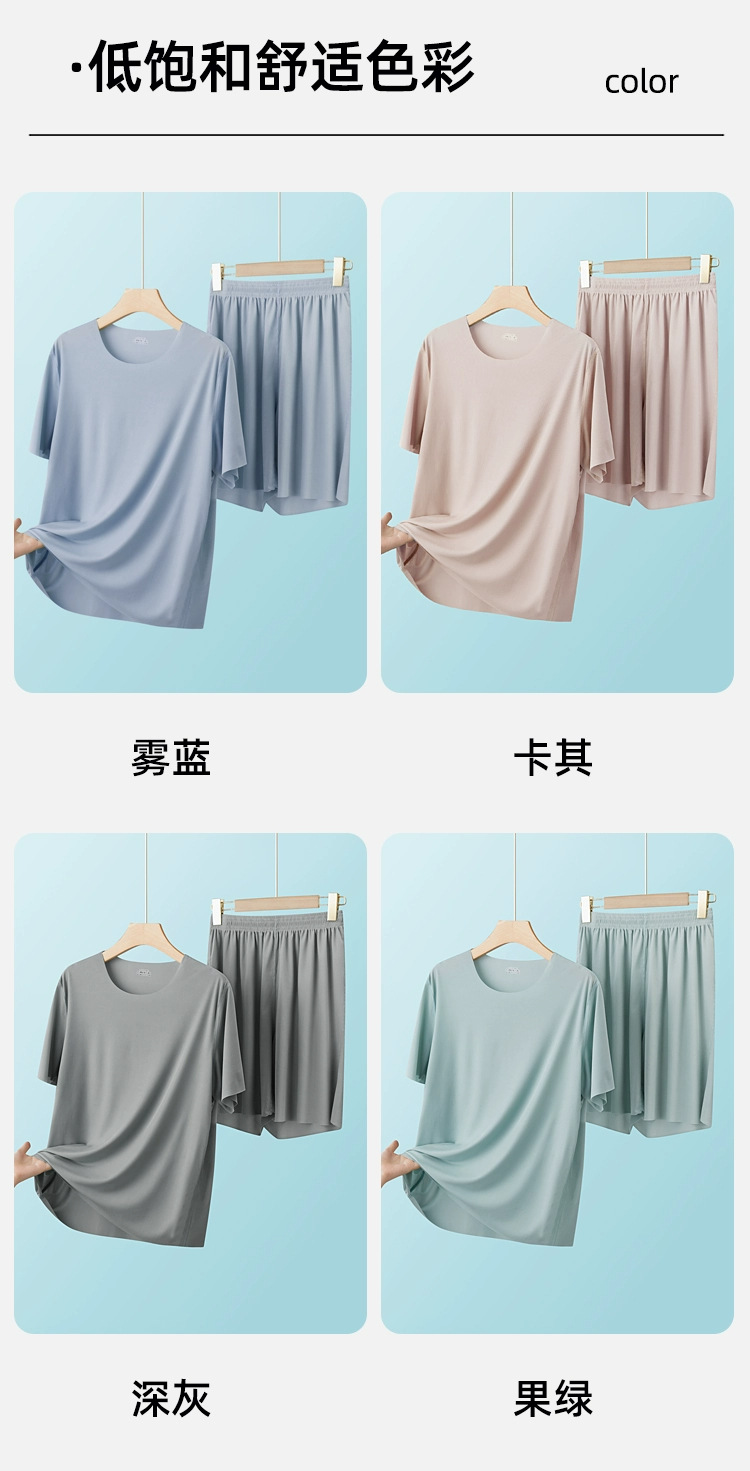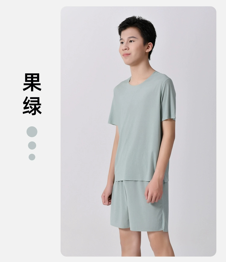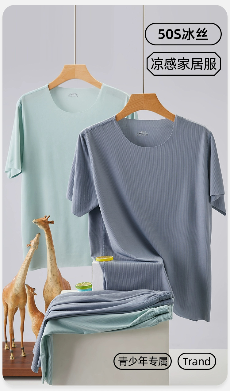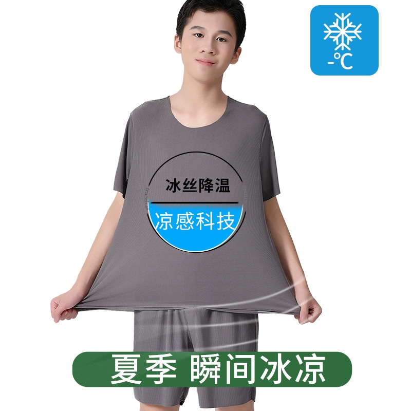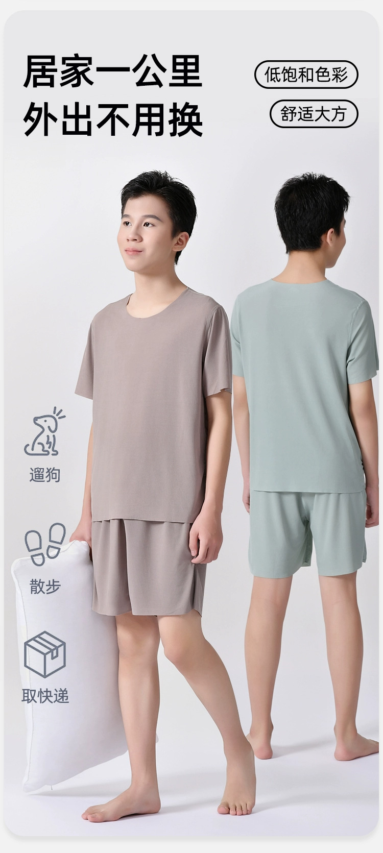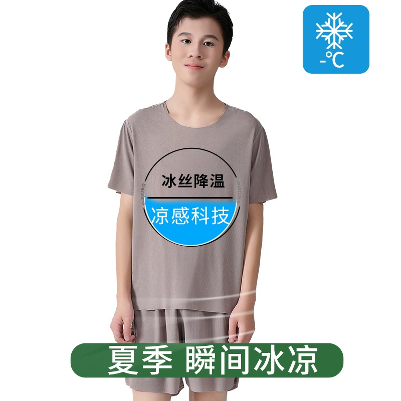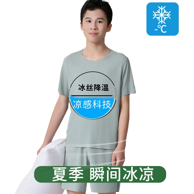 청소년 여름 아이스 실크 파자마 세트 얇은 아웃웨어 학생 홈 의류 반팔 반바지 남성용 반바지