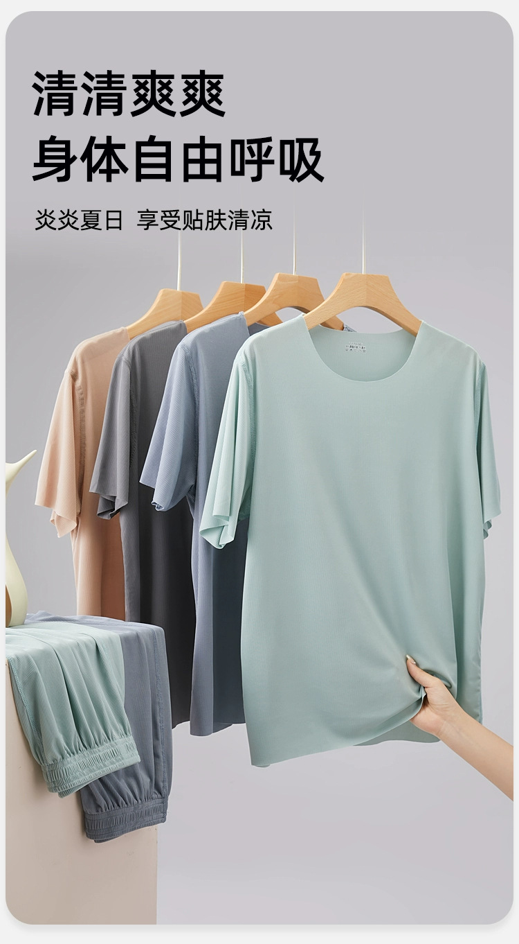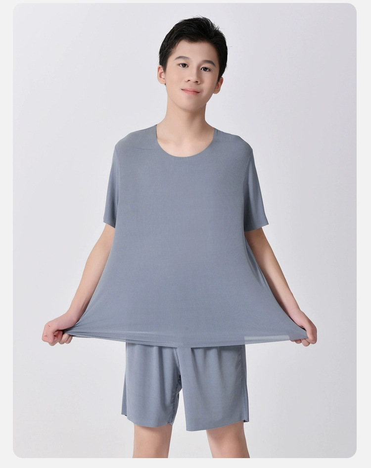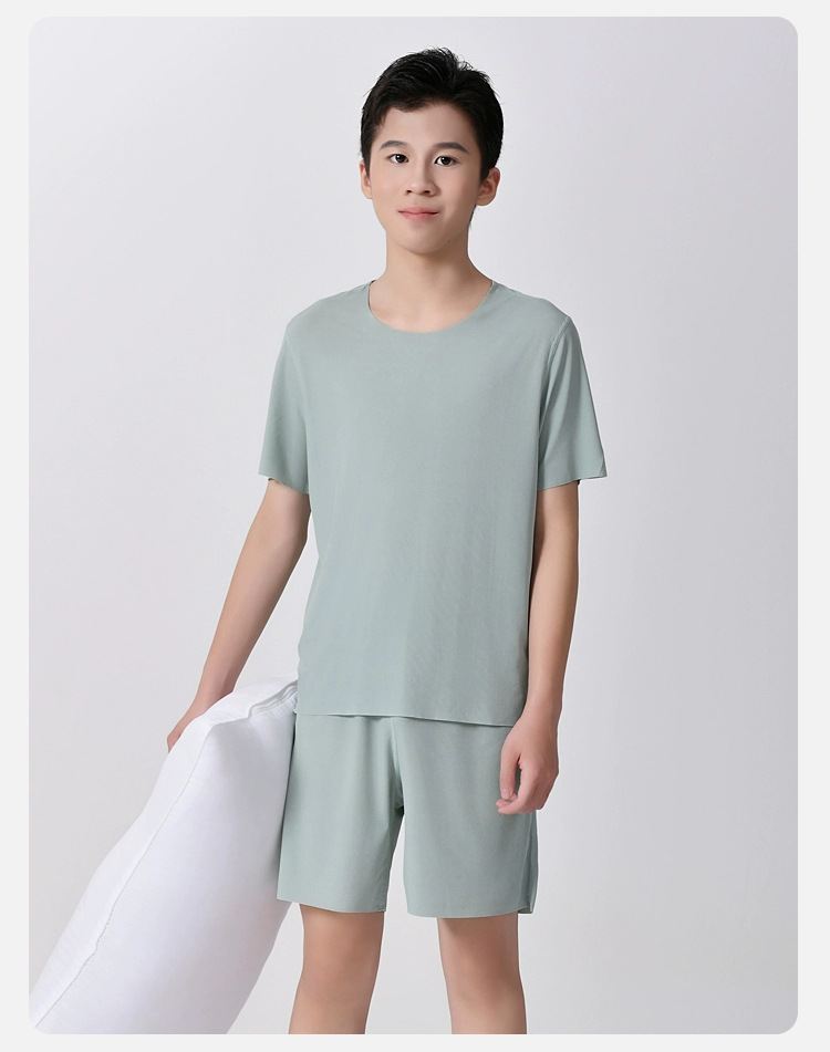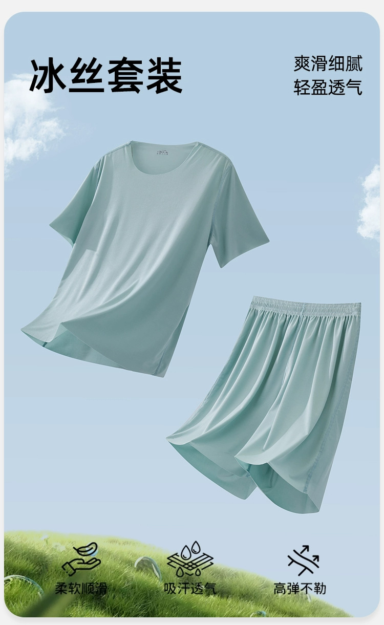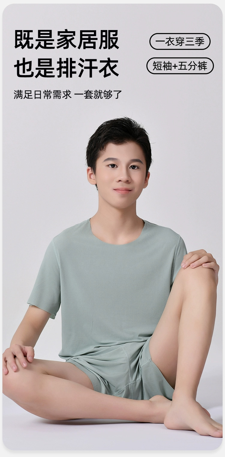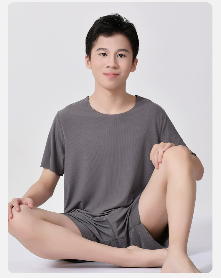 청소년 여름 아이스 실크 파자마 세트 얇은 아웃웨어 학생 홈 의류 반팔 반바지 남성용 반바지