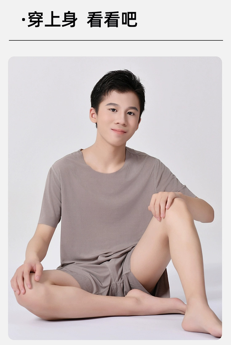 청소년 여름 아이스 실크 파자마 세트 얇은 아웃웨어 학생 홈 의류 반팔 반바지 남성용 반바지스토어 가기