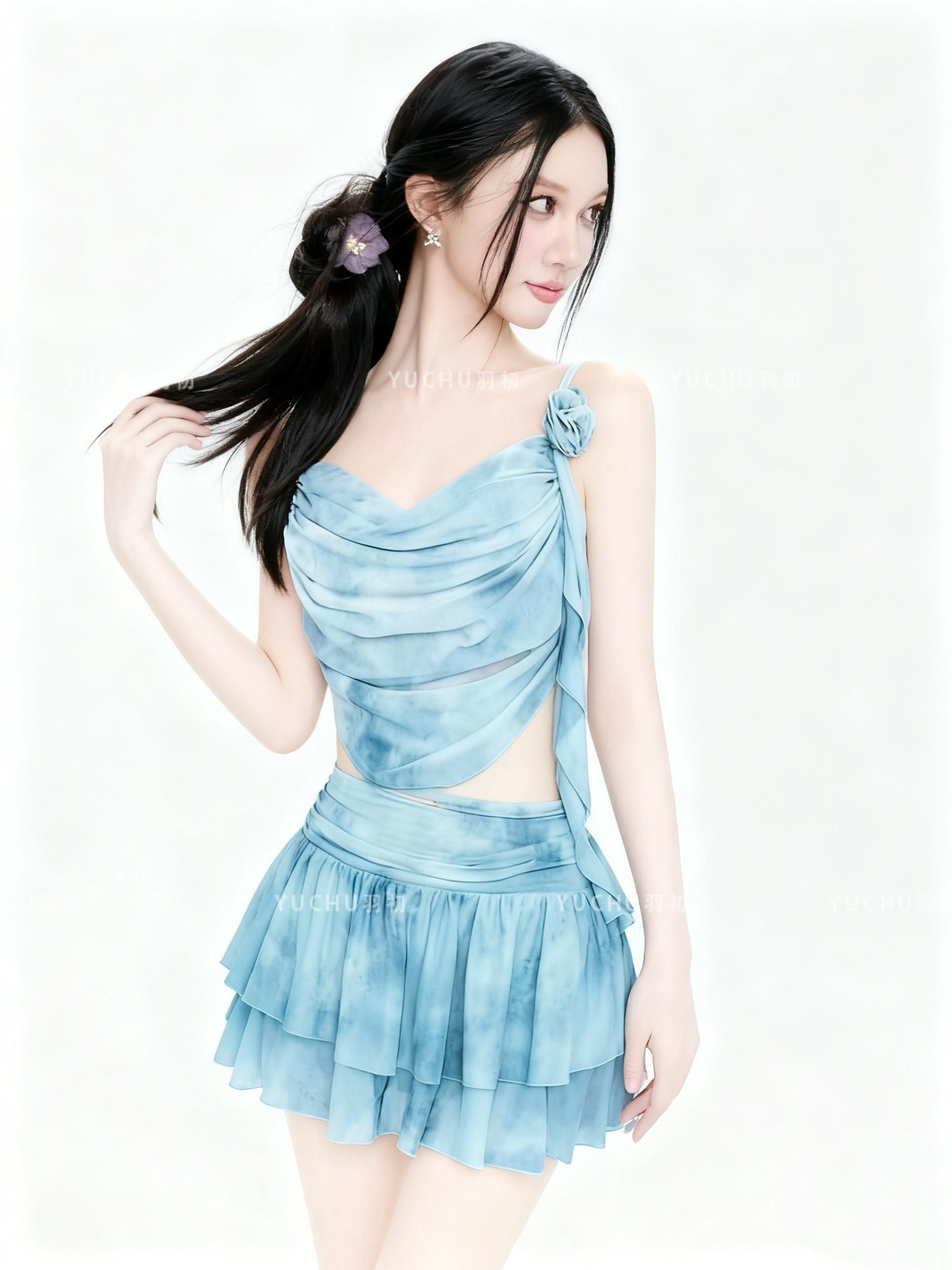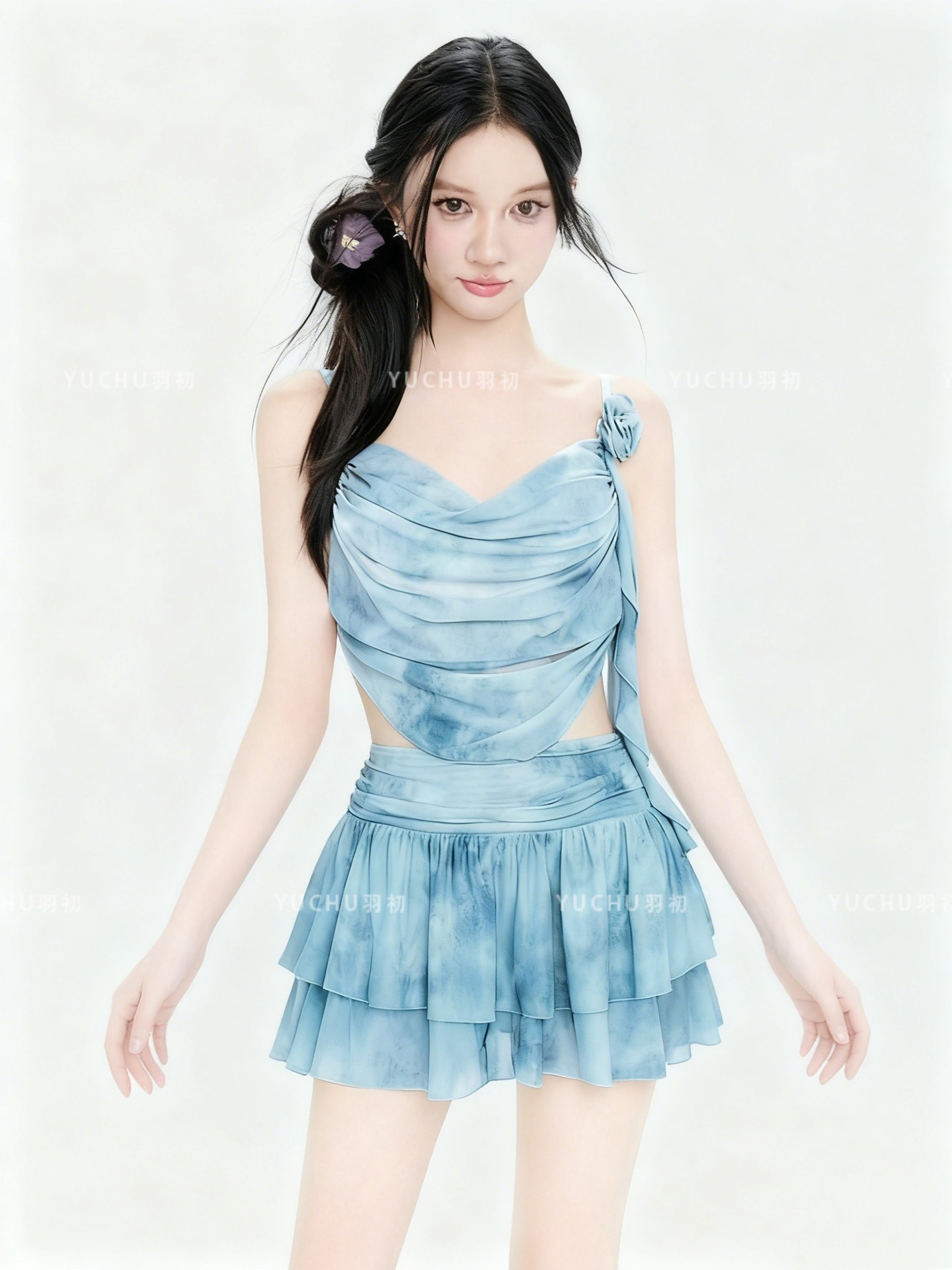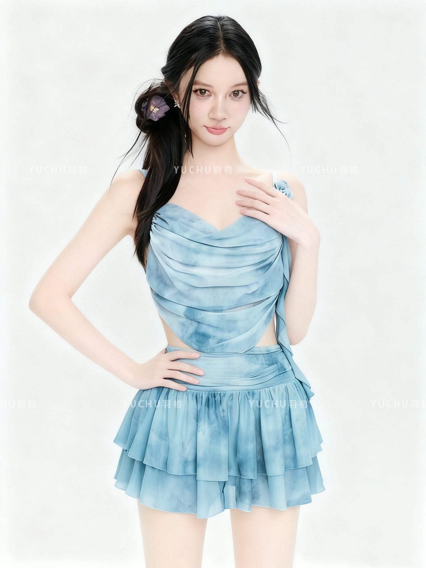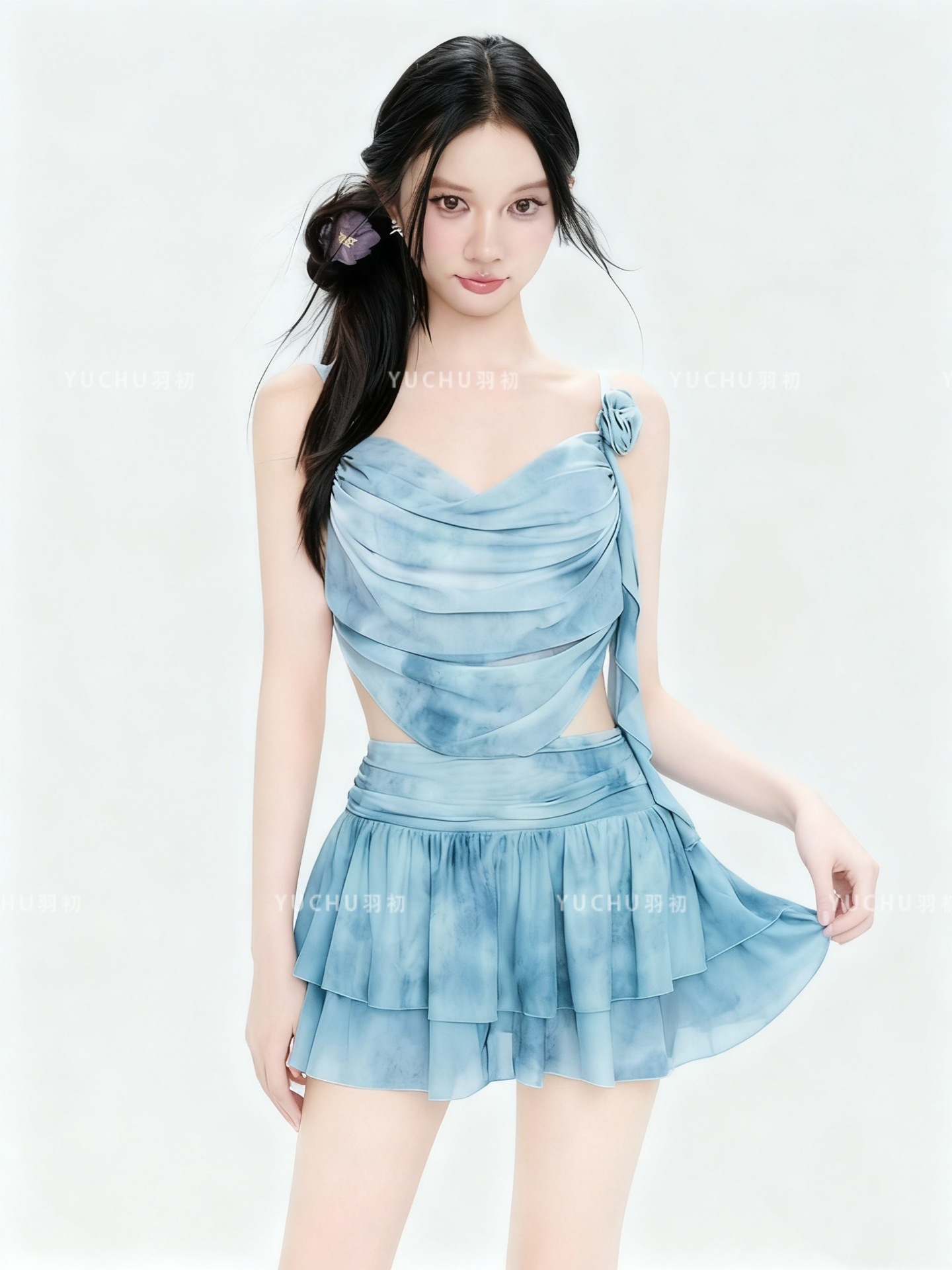 여성용 폴리에스터 수영복 2026년 신상품, 스머지드 메쉬 분리형, 고급스러운 스커트 스타일, 슬림하고 단정하며 아름다운, 온천 휴가에 적합