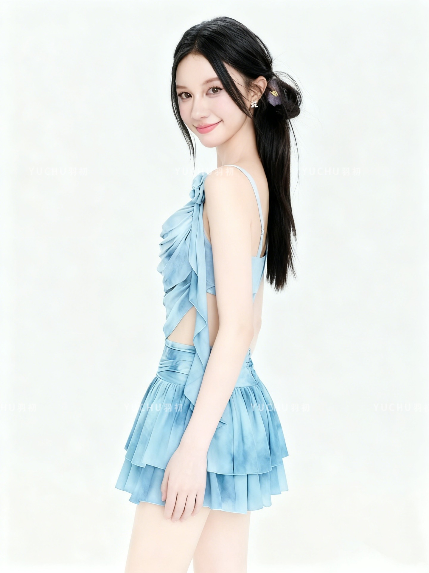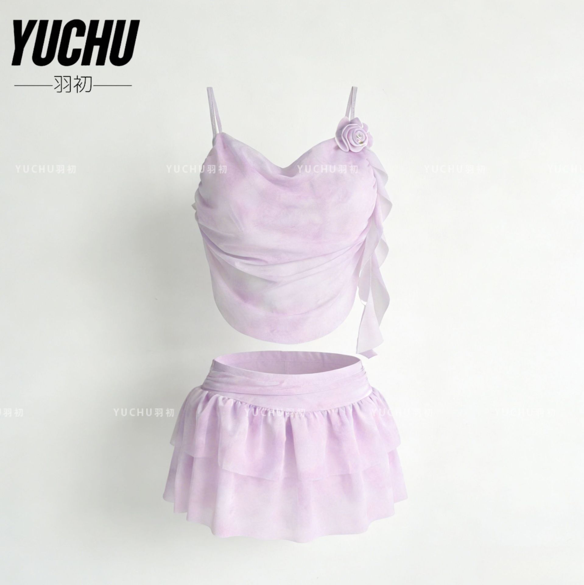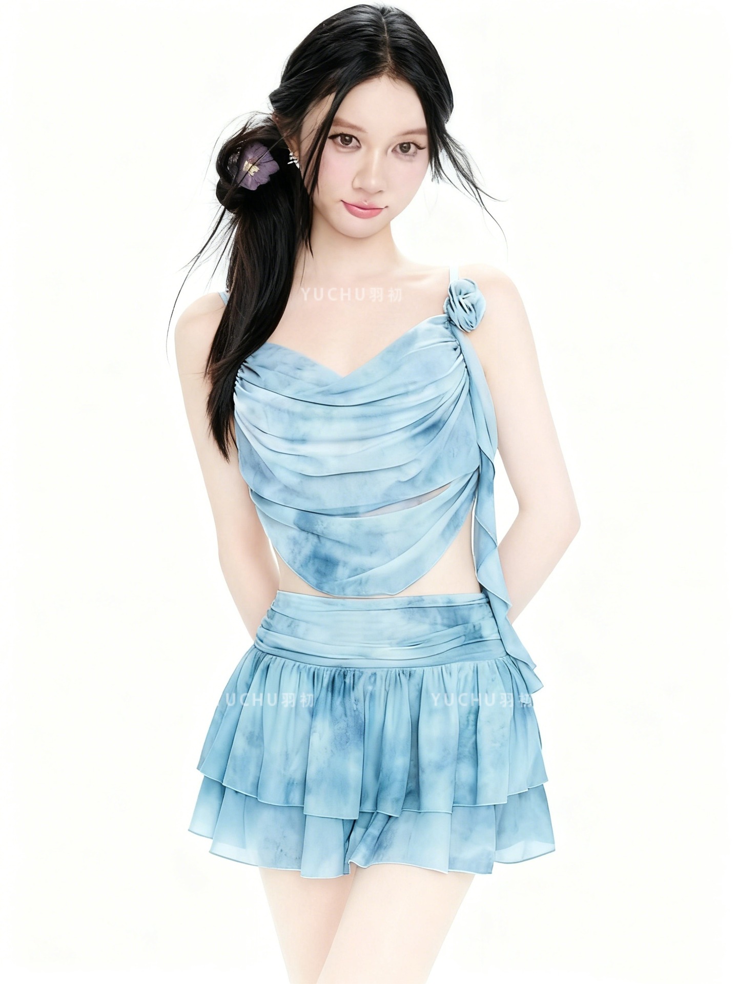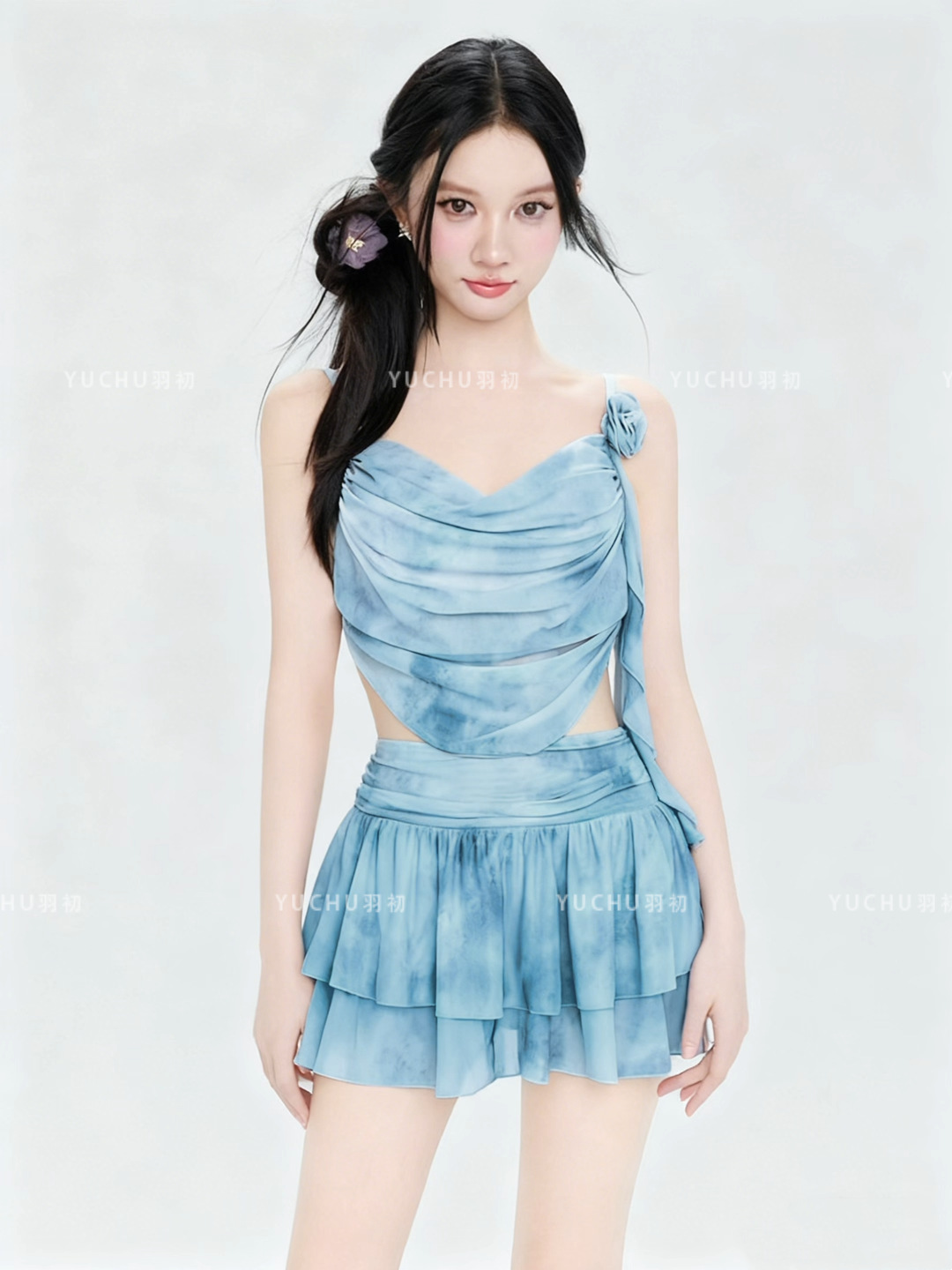 여성용 폴리에스터 수영복 2026년 신상품, 스머지드 메쉬 분리형, 고급스러운 스커트 스타일, 슬림하고 단정하며 아름다운, 온천 휴가에 적합