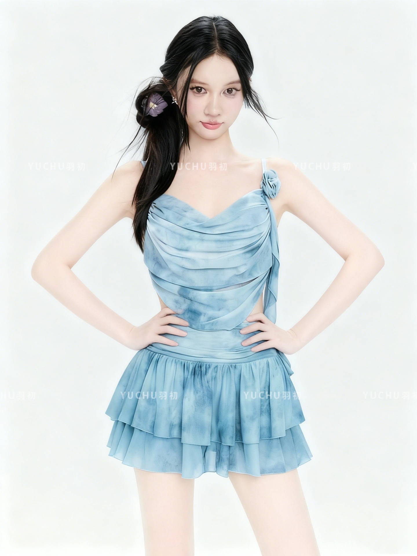 여성용 폴리에스터 수영복 2026년 신상품, 스머지드 메쉬 분리형, 고급스러운 스커트 스타일, 슬림하고 단정하며 아름다운, 온천 휴가에 적합스토어 가기