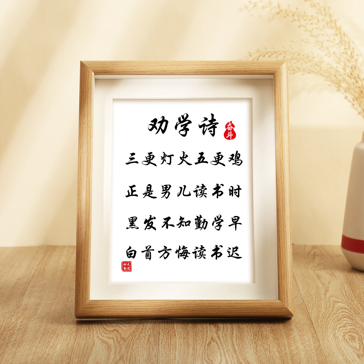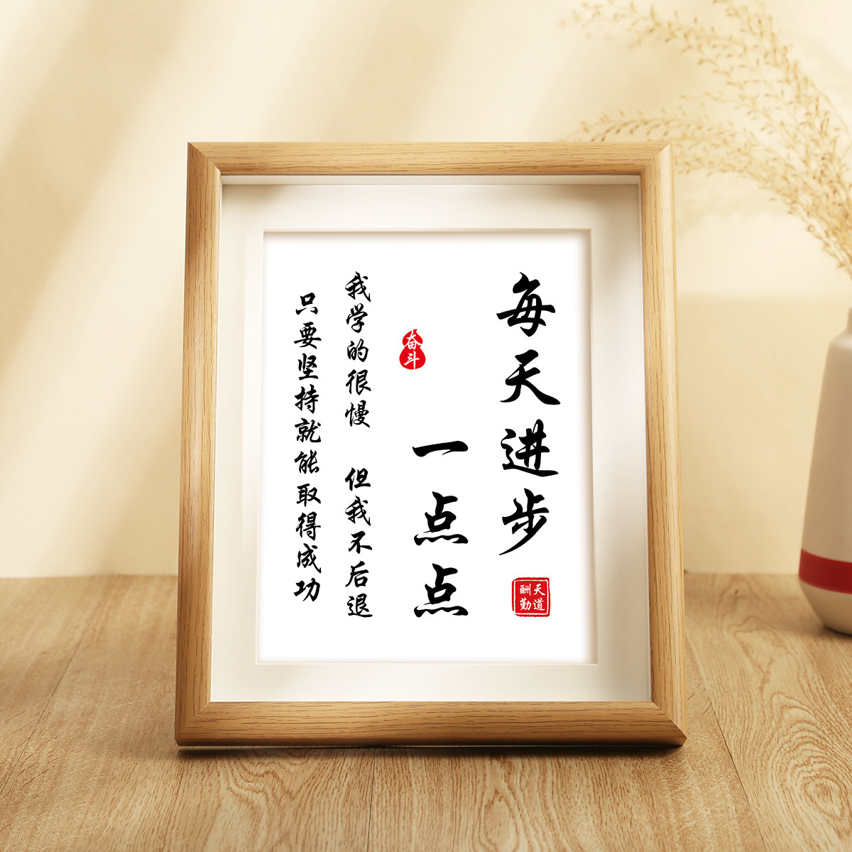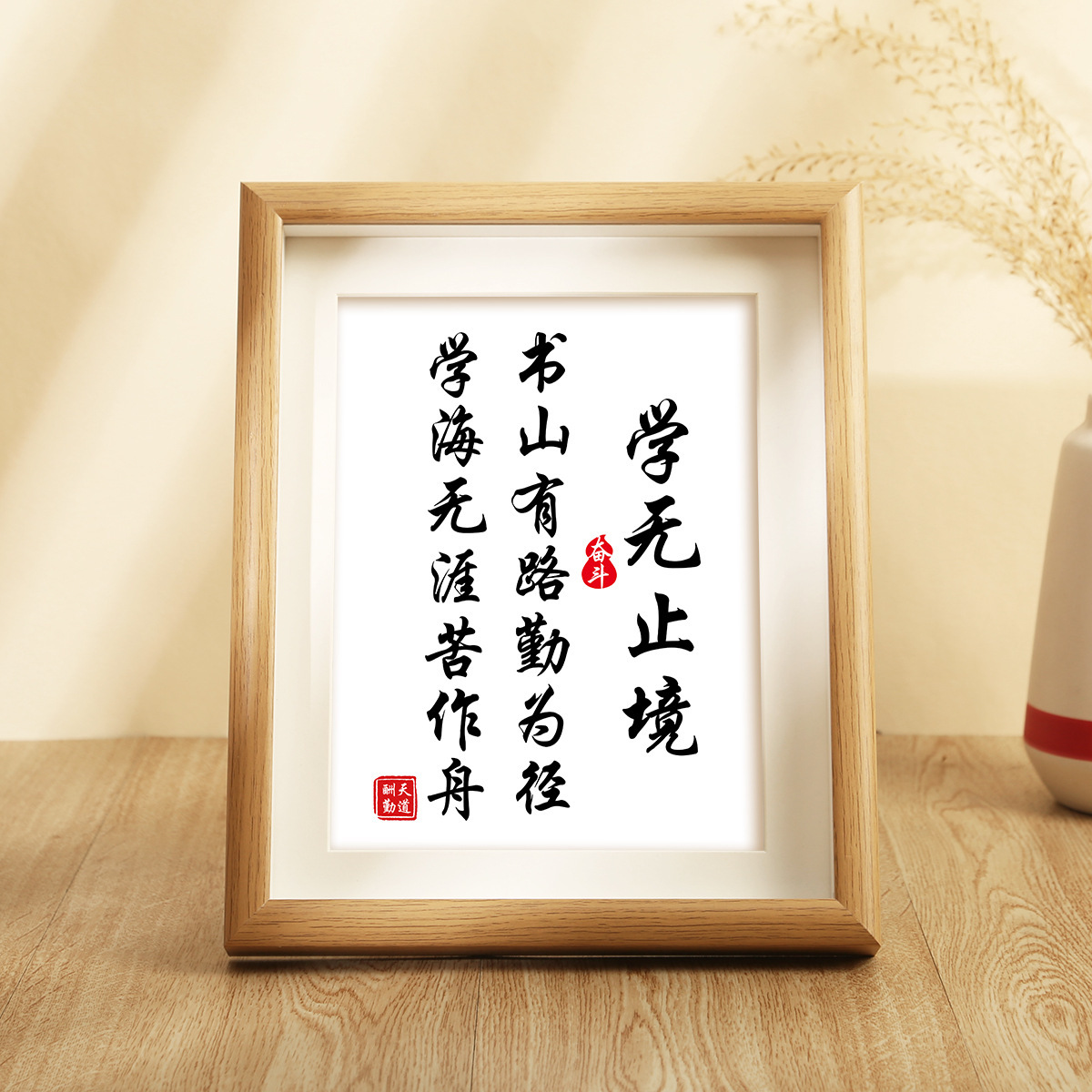 학습은 매우 어렵고 고무적입니다. 나무 사진 프레임 서예 작업을 주장하십시오. 프레임 행운의 캐릭터 작은 사진 프레임 그림 프레임 DIY 프레임 설정 테이블